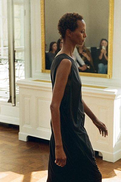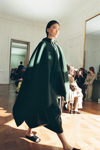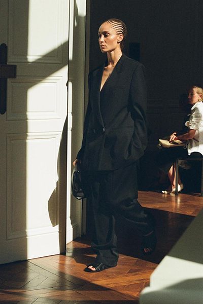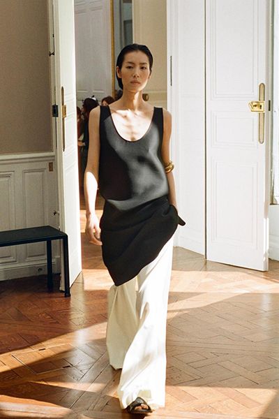 時裝品牌 The Row以極簡美學出名,在2024 年的春夏季系列中,以簡約且大膽的設計再次樹立起安靜奢華的旗幟,版型上強調垂墜美,不對稱的設計讓整體系列不死板。實穿性的單品。如:西裝外套、風衣、西裝褲、連身裙、晚裝等都盡顯設計師Ashley Olsen和Mary-Kate Olsen設計中低調簡約的風采。
