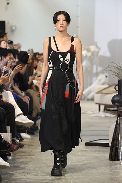24春夏系列設計以「人文工藝」和「DIY精神」表現出「有機」與「自由」意象。不論是將面料加熱,讓組織跟隨原有的特性而產生扭曲,又或是使用腐鏽的腳踏車鍊條讓繡染在布表留下路徑,又或者是以二手機車服進行解構設計,這些結果全非來自人為的「工藝」控制,往往蘊含著意想不到的自然美麗,是靈活創作下所產生的驚喜。