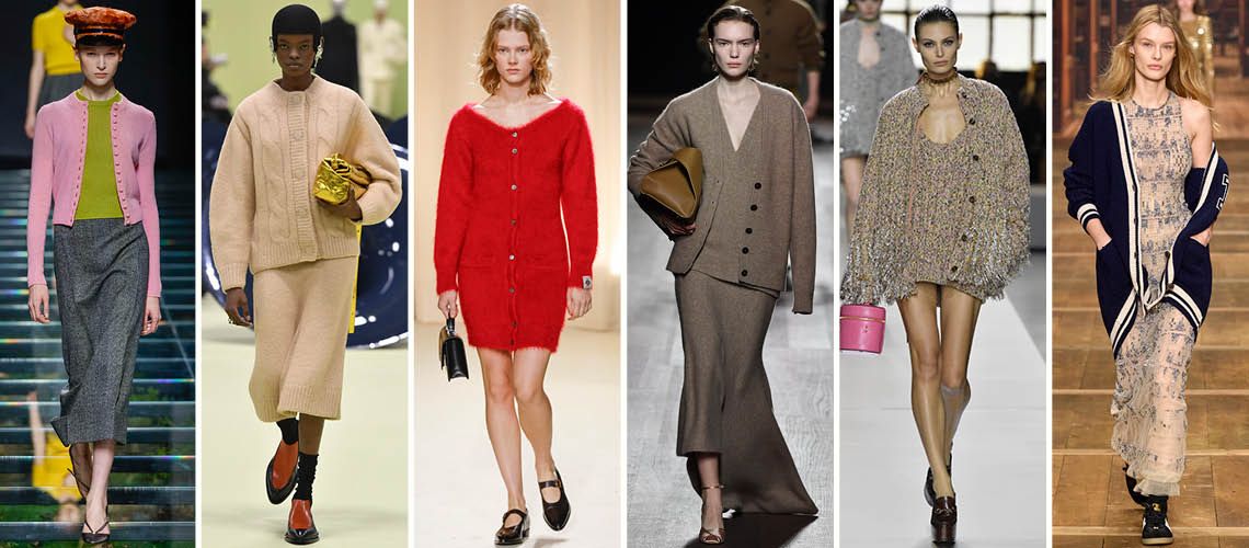 2024/25秋冬米蘭在日常單品中尋找美感與實穿性,其中開襟針織衫出現在眾多品牌,針織的舒適性和開襟設計的正式感,為辦公服帶來新選擇。