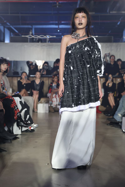在細節上,JENN LEE本季依舊貫徹標誌性的解構風格,透過褶皺、外露接縫,以及品牌象徵性的心形拉鍊等設計,重新詮釋結構、流動性和功能性之間的動態對話,賦予服裝實用性之外更帶來獨特的藝術和戲劇張力。