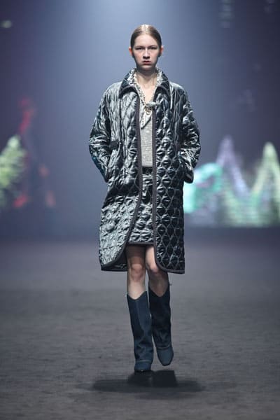 在都市與自然間穿梭,快與慢之間藏著創作的詩意。Liyu Tsai本季以「雙重節奏 Double Rhythm」為主題,描繪日與夜、理性與感性之間的靈感遷徙,並利用各種不同的荷葉細節,改變廓型,雕塑氛圍。
