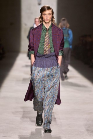 由Julian Klausner執掌的Dries Van Noten 2026秋冬男裝系列,以「When Dawn Breaks」為題,捕捉年輕人帶著繼承衣櫥「離家」奔赴大都會的青澀與興奮。