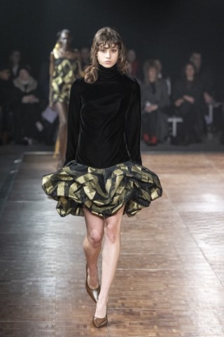 建築感的垂墜剪裁與繭型輪廓,重塑身體線條並賦予強烈的視覺份量。抽褶氣球下擺應用在短裙或短褲上,增添了俏皮可愛感,如Area的蓬蓬短裙;Aknvas則透過立體裁片展現建築般的構造感。