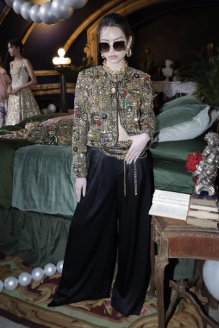 紐約設計師將華麗繁複落實於日常穿著,透過花卉刺繡或地毯提花,成就現代的新文藝復興。例如:Alice + Olivia宛如昂貴波斯地毯般的花卉大衣,彰顯了極致的奢華氣場。Ralph Lauren以黑色珠飾妝點於黑色褲裝,在低調中既華麗又洗鍊。