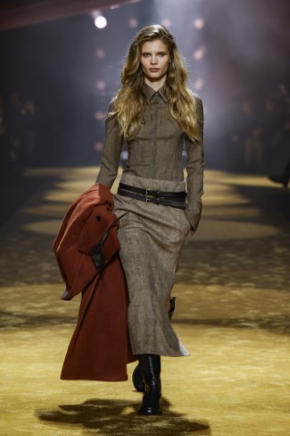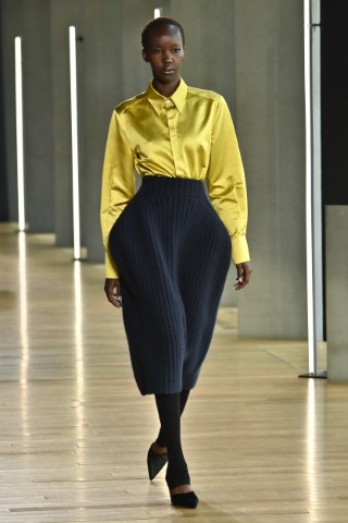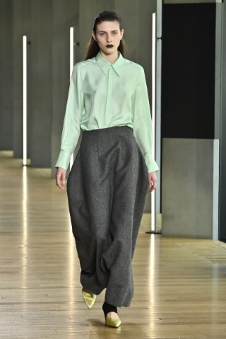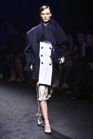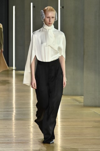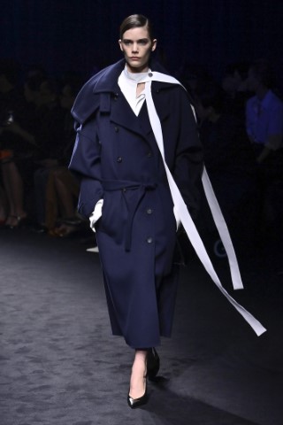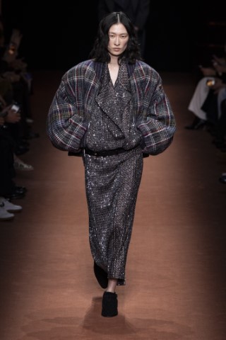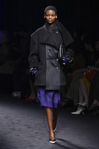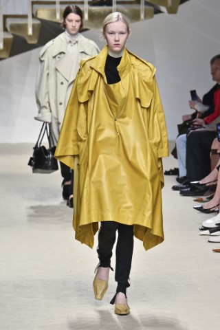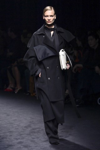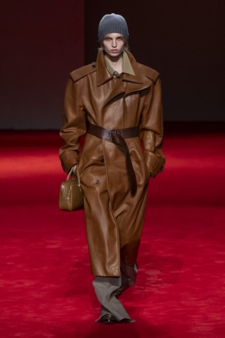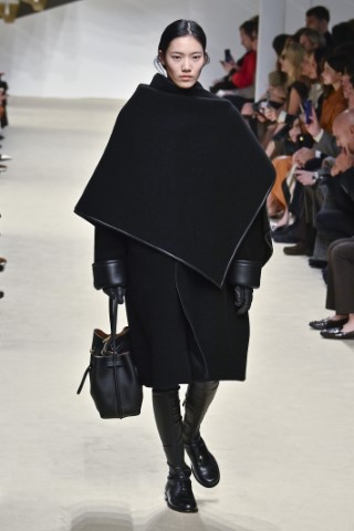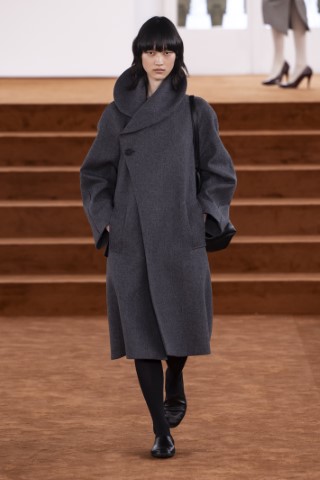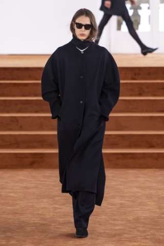有著寬大肩線和誇張領片的oversize大衣持續佔據主導地位,採用包裹式的輪廓,結合雙排釦、漏斗領以及受軍裝啟發的防風擋片,讓整個輪廓充滿氣場。搭配紮實厚重的毛呢與深沈的