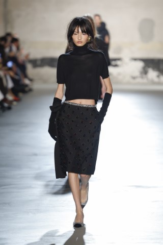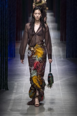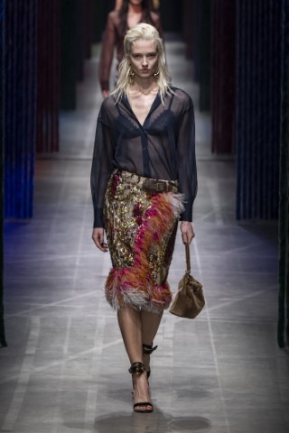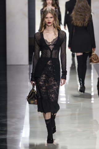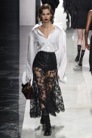 長度及膝或過膝的鉛筆裙,依舊佔有米蘭潮流的不敗地位。主要以柔軟材質如薄紗或蕾絲,展現女性端莊與性感兼具的矛盾美感。例如Fendi和Dolce & Gabbana的蕾絲薄紗鉛筆裙,搭配全黑造型,完美迎合本季的暗黑浪漫趨勢。Boss和Jil Sander的西服面料鉛筆裙,硬挺的質地非常適合都會上班族優雅幹練的專業形象。Missoni的亮片針織鉛筆裙,則同時帶著華麗又柔軟的女性魅力。