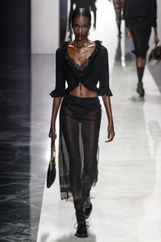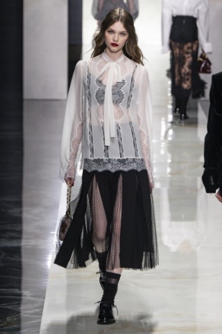 浪漫襯衫透過堆疊的荷葉邊或蝴蝶結領,讓經典單品充滿了義式浪漫。特別是搭配輕盈的薄紗、蕾絲或綢緞,帶來更加柔美的視覺流動性。Dolce & Gabbana和Fendi的蕾絲拼接襯衫,顯得精緻且若隱若現;Genny和Marco Rambaldi在領口加入的荷葉邊褶飾,則讓整體廓形充滿女性特質。另外SaSuPhi的領結緞面襯衫,搭配披風式蓋袖,兼具力量感又不失柔美。