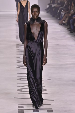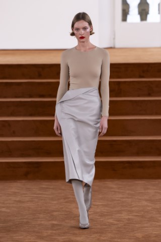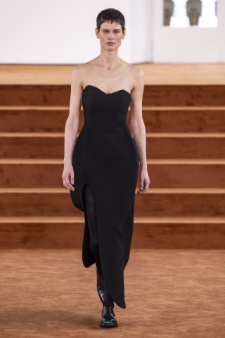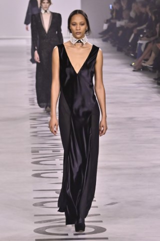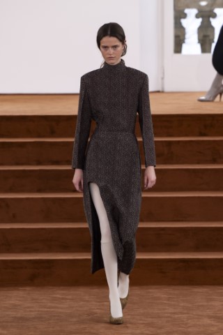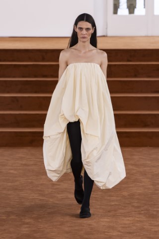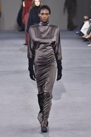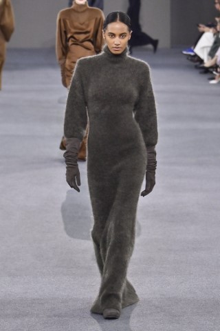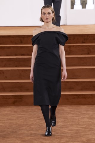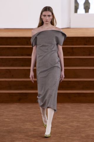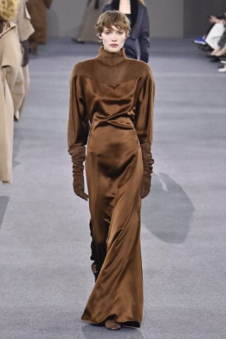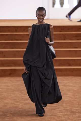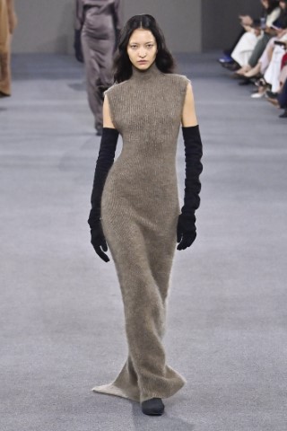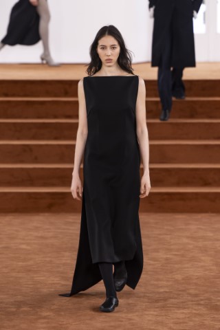 直筒連身裙以簡約的輪廓屏除冗贅裝飾,以修長的柱形和流暢的及地廓形,搭配沉穩的色彩,來襯托剪裁細節及材質紋理。