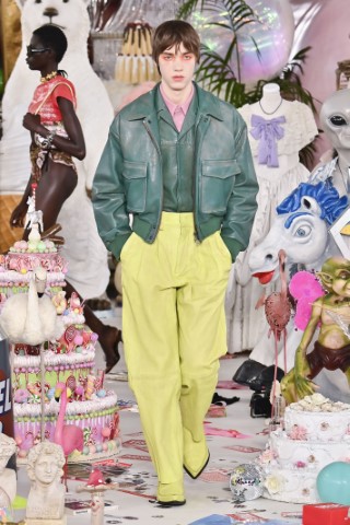 飛行員夾克演變為更高雅的型態,從街頭單品轉型融入都市穿梭的多元場景,輪廓涵蓋短版、合身到超大、繭型等多樣風格。Emporio Armani和Ferrari的皮革夾克帥氣俐落。Gucci和HUI用皮草領帶出華麗氣場,而Prada和Antonio Marras則用色塊拼接與細微的圖案點綴出街頭俏皮感。