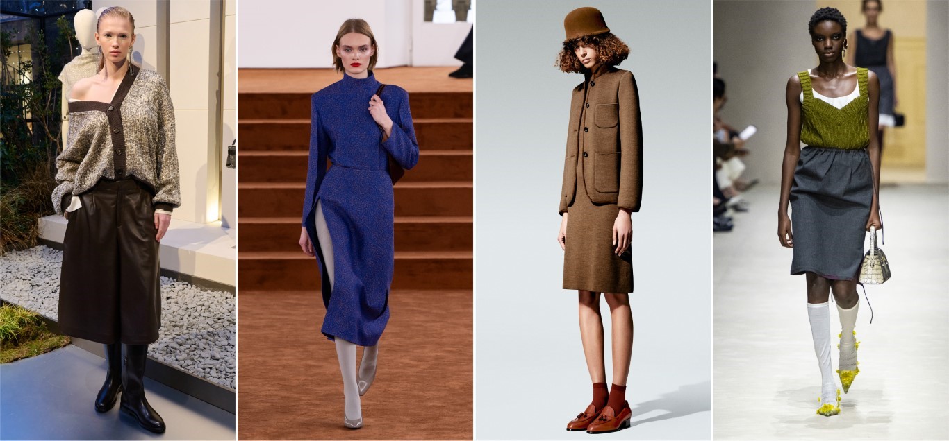 最愛品牌:Fendi、Prada、Brunello Cucinelli、Loro Piana、Bottega Veneta。由左至右:Bottega Veneta / Brunello Cucinelli / Fendi / Loro Piana / Prada北美奢侈品集團Saks Fifth Avenue與Neiman Marcus指出,本季的特色在於層次感-這不僅體現在Prada的顛覆性秀場概念中,也出現在整體造型的運用上,賦予每套造型獨特的個性。此外,2026/27秋冬的輪廓略顯修長,Marni和Jil Sander的秀場上出現了修身的半身裙和修身套裝。鞋跟高度有所提升,幾乎每場秀都出現了優雅的細高跟鞋。