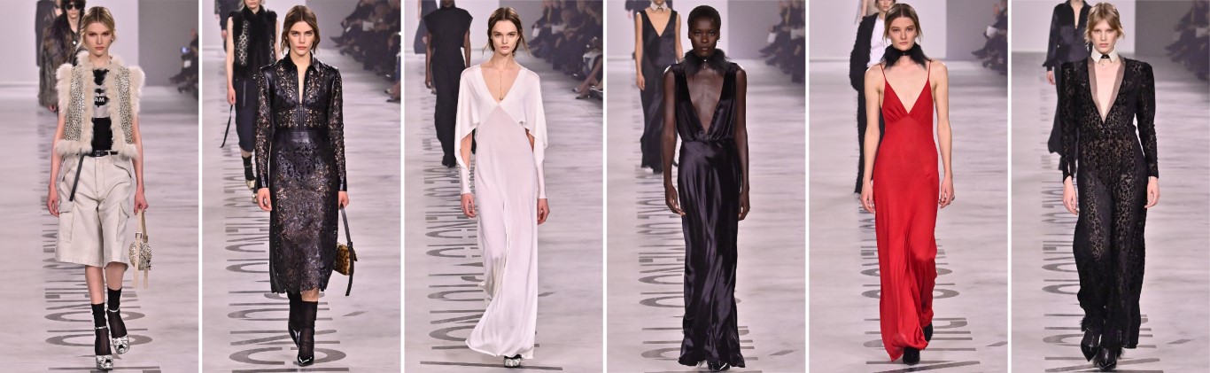 Fendi, 26AWGucci:Demna的首秀意味著品牌開啟「新篇章」,Tom Ford時期的性感誘惑與顛覆性美學結合,呈現出大膽且有趣的90年代風格。