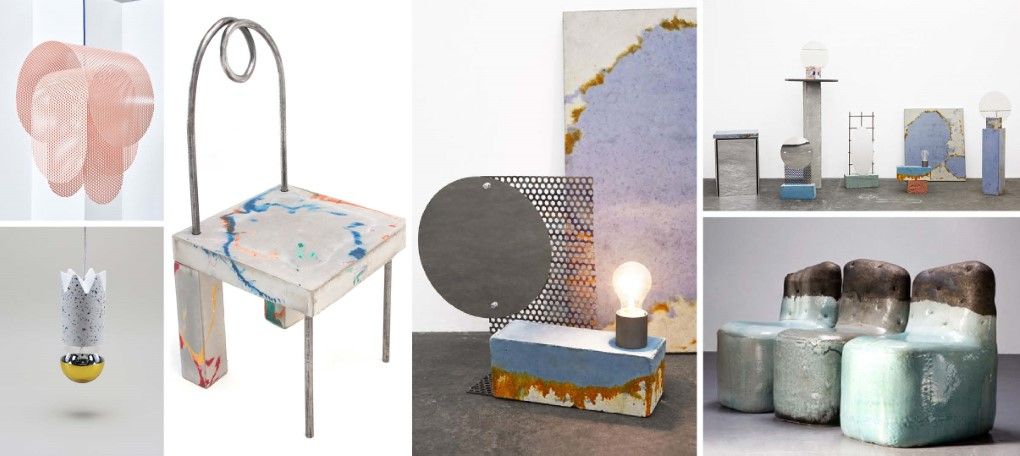 另種手法則將傳統工業用的水泥、石材…等,調和得更為柔和,在色調上也加入了粉嫩色彩,使原本粗獷的工業風營造的更為詩意。例如Talbot&Yoon名為“Bob Lamp”的燈具,即為將混凝土與回收玻璃材質混合的聚集體,是一可在小型檯燈和吊燈燈具兩種造型之間進行轉換的設計。