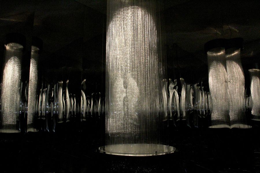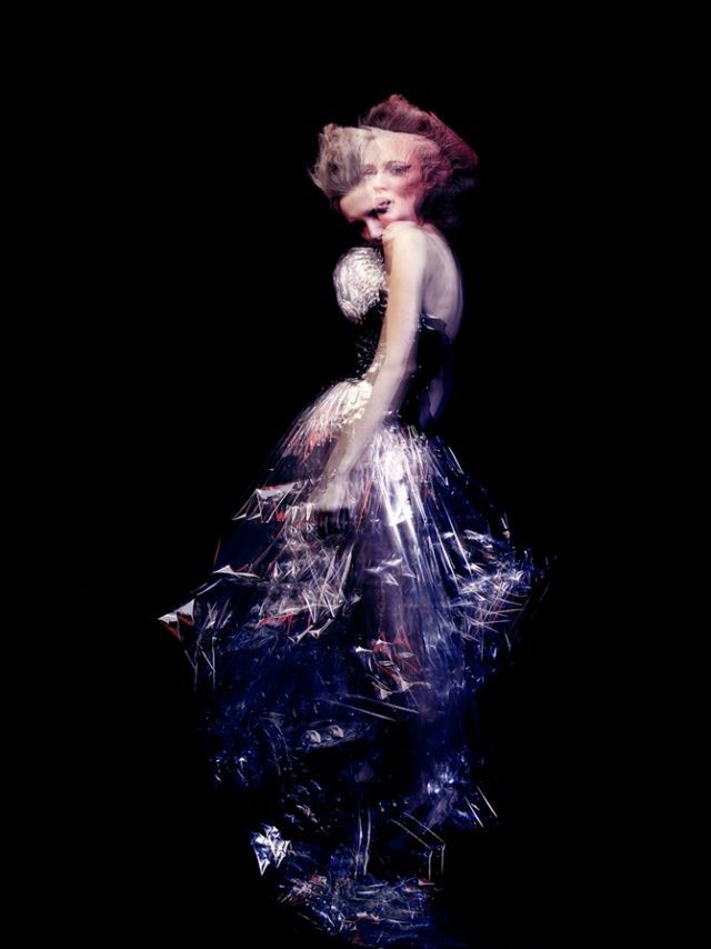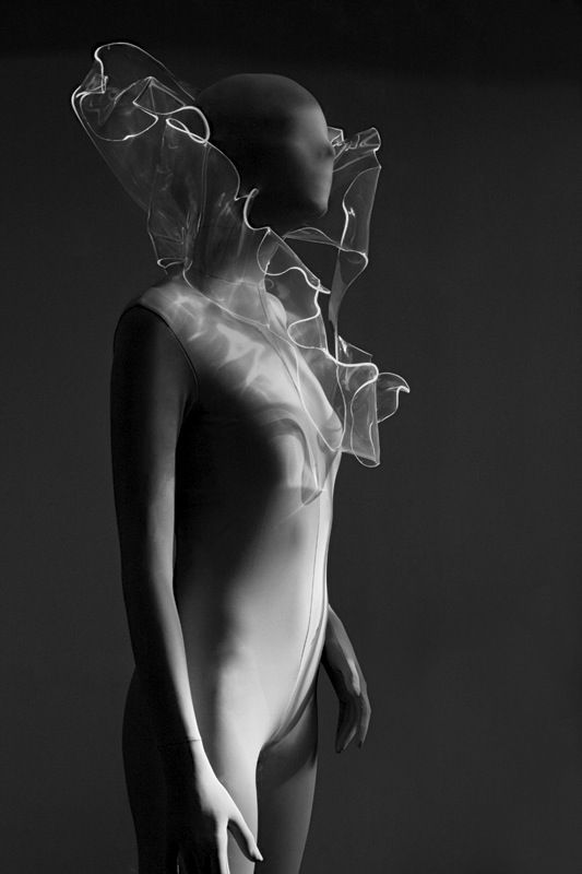 至於在人體造型上,則大玩透明材質、織物材料、啞光和反光表面,企圖創造出一種飄渺的視覺,用以呈現模糊而充滿神秘詩意的情境。色調上則偏向墨色藍色、深紫色、紫紅色、和青紫藍。