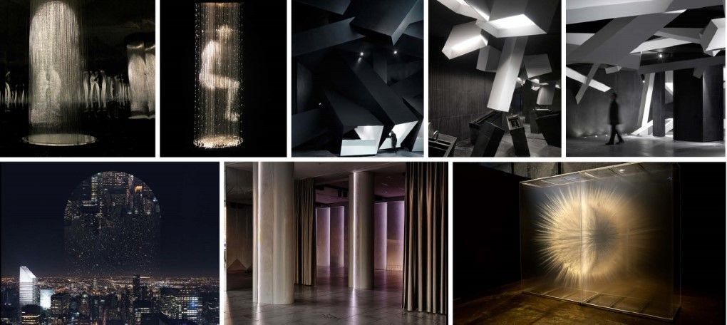 利用物件本身特性與空間作對話,運用反光鏡面、刻面、與光源巧妙的擺放投射,以層次交疊的光影變化(並可暗藏富麗的珠寶色澤於其間),營造出充滿律動與意趣的戲劇性空間。例如建築大師Steven Holl設計的Riddled Table,靈感來自朦朧的天空和銀河星象,利用雷射切割刻面篩漏光線,創造出銀河星系的效果。