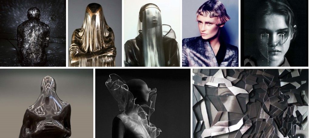至於在人體造型上,則大玩透明材質、織物材料、啞光和反光表面,企圖創造出一種飄渺的視覺,用以呈現模糊而充滿神秘詩意的情境。色調上則偏向墨色藍色、深紫色、紫紅色、和青紫藍。