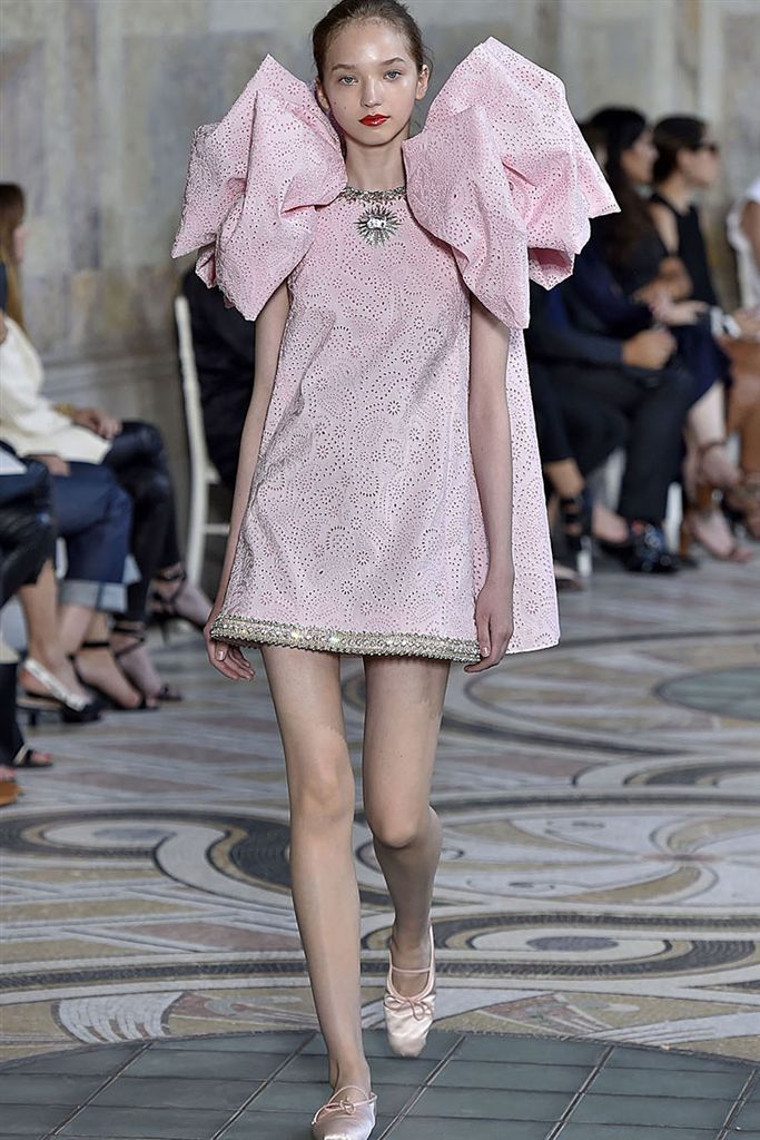 受到2017/18秋冬”瘋狂異想曲”潮流氛圍的影響,以及80年代寬肩裝飾風格的靈感,誇張戲劇化的肩膀裝飾成為震撼視覺的焦點。譬如,Giambattista Valli與Ralph Russo以浪漫甜美的風格展現,彷彿將超大的蝴蝶節裝飾在肩膀與後頸;Stephane Rolland與Viktor&Rolf運用亮麗的現代感面料展現如翅膀雙翼展開般的超大袖山;Giorgio Armani Prive則是選擇了黑寡婦風格,有如伊莉莎白一世超大荷葉領搭配膝下鉛筆裙,打造出非凡氣勢。