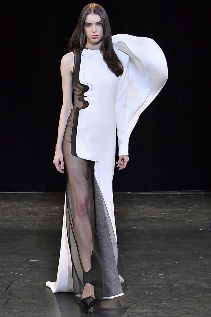 高級訂製服永遠是設計師們發揮天馬行空創意的園地,除了在服裝上有特殊材質的應用(如Iris Van Herpen與Adeline Andre),誇張的版型結構也是一大特色,譬如Maison Margiela 的細褶大輪廓變體風衣、Stephane Rolland彷彿雕塑品的簡約輪廓,以及表現性十足的Viktor&Rolf大娃娃頭造型。