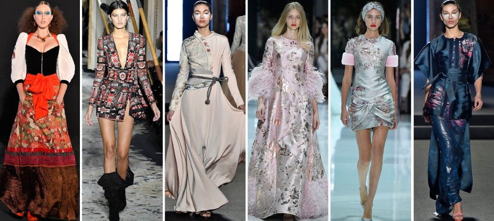 在2018春夏高級訂製女裝裡,東方元素的表現也是一大重要的訊息。例如Zuhair Murad將東方的和服與腰帶元素融合西方飄逸的合身洋裝;Julien Fournie的東洋圖騰提花裝飾優雅又大方,並將東方旗袍式的輪廓與和服袖型巧妙融入現代服飾中;Ronald Van Der Kemp則將東洋的花卉圖騰拼接運用在服裝中。