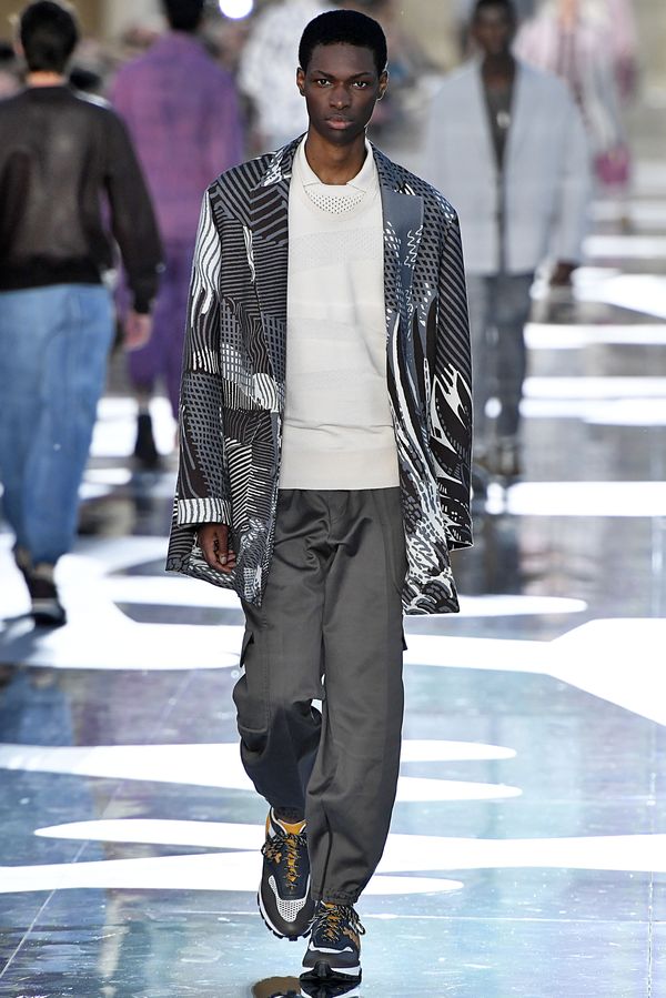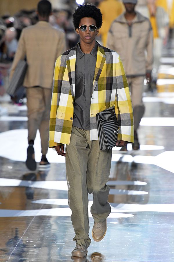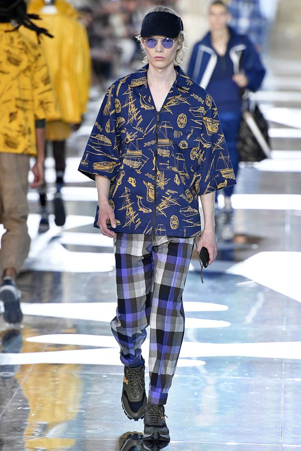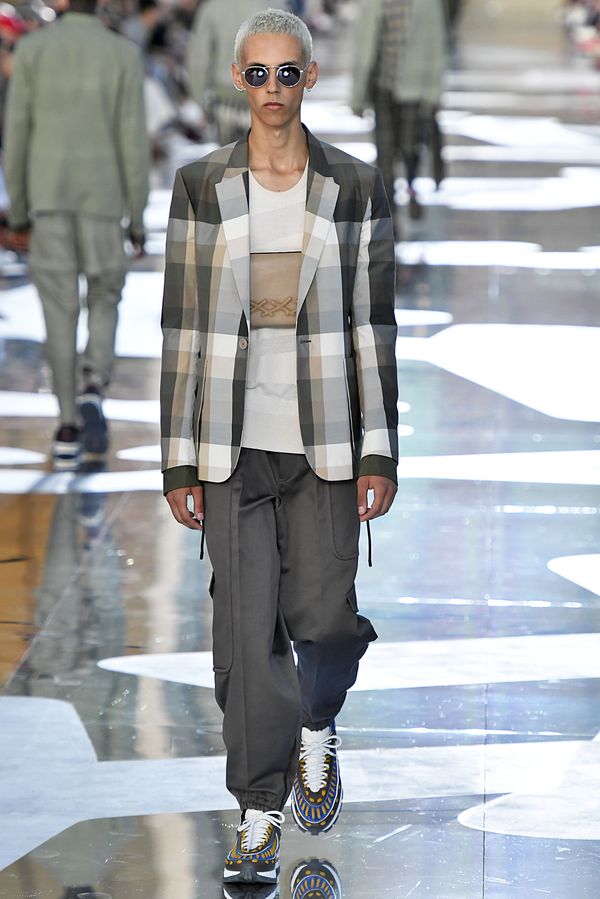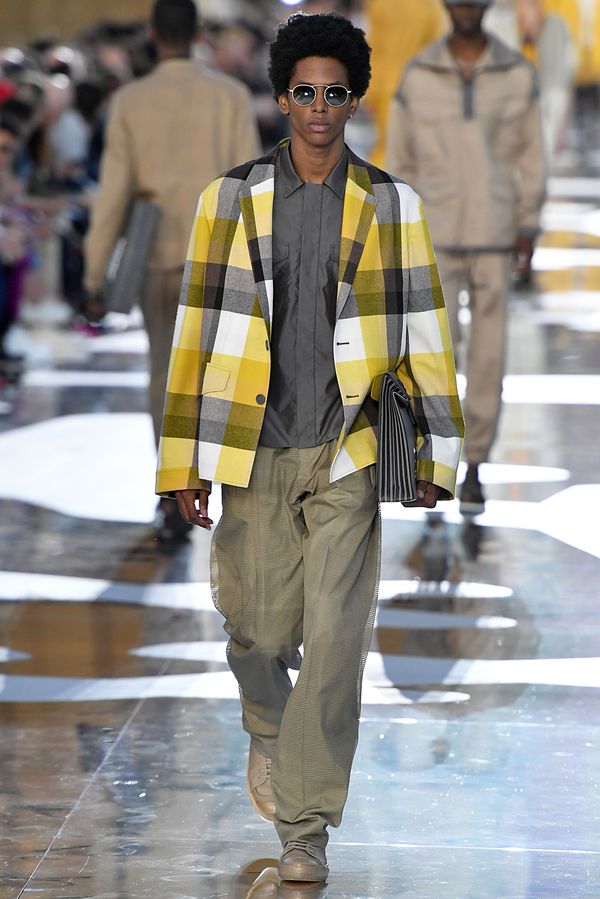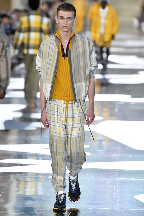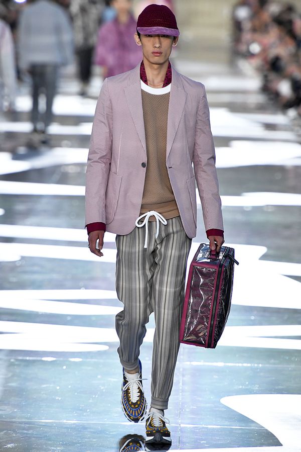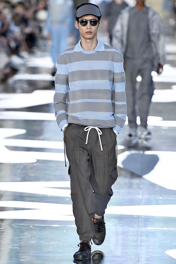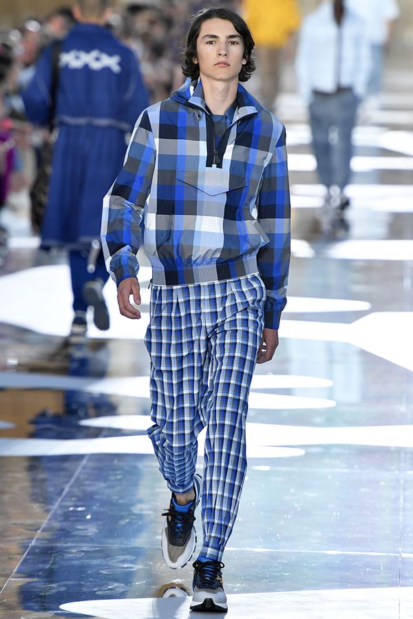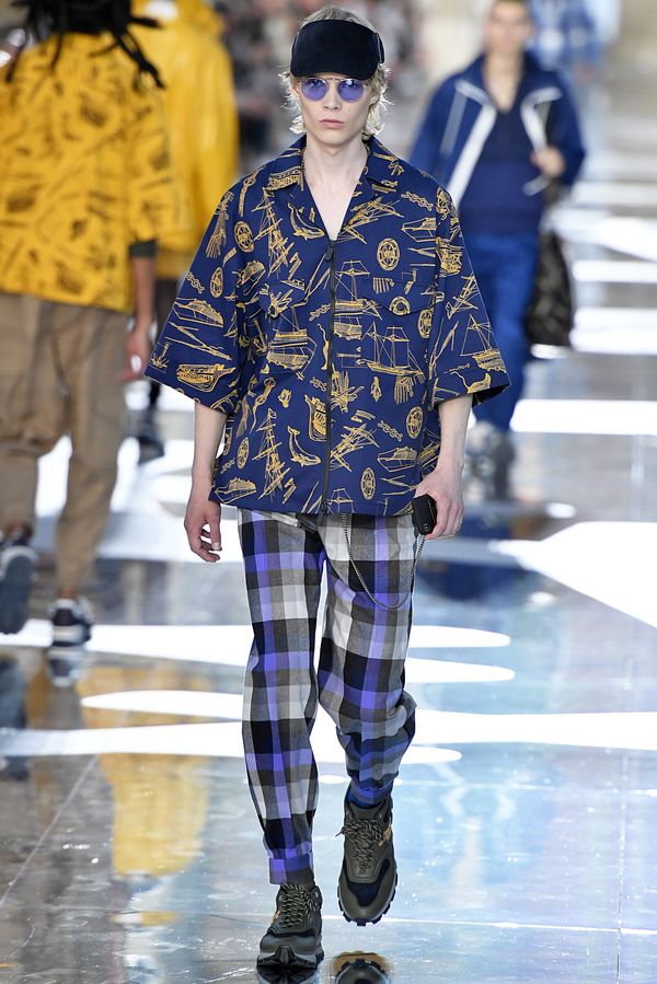 服裝的輪廓和輕量材質為本季設計核心:如日本工裝般寬鬆簡約的箱型輪廓、色彩層疊的格紋、以及豐富的印花設計,例如打網球的飛奔運動員、帆船輪軸鯨魚暗喻的海洋故事、藝術感的抽象幾何,與交錯綁帶的x符號。