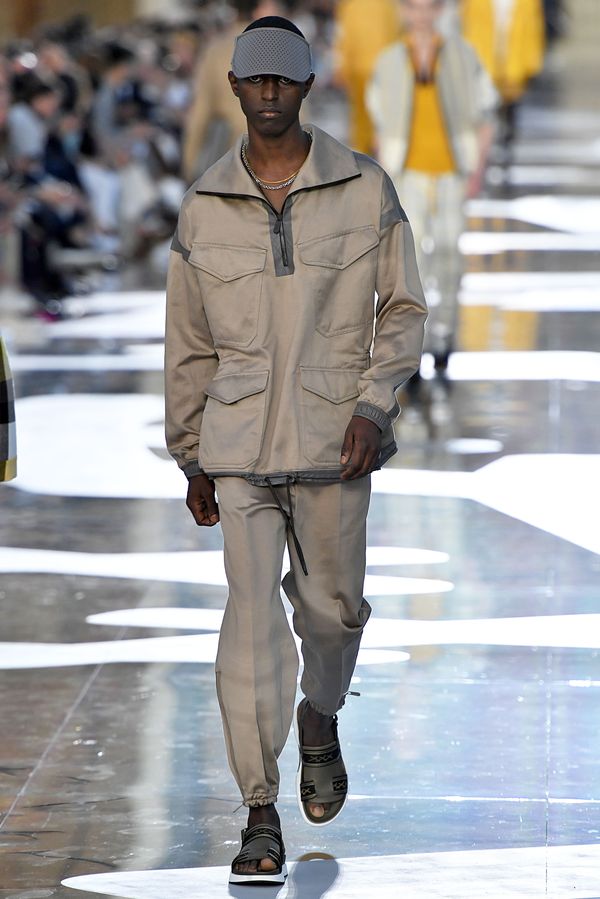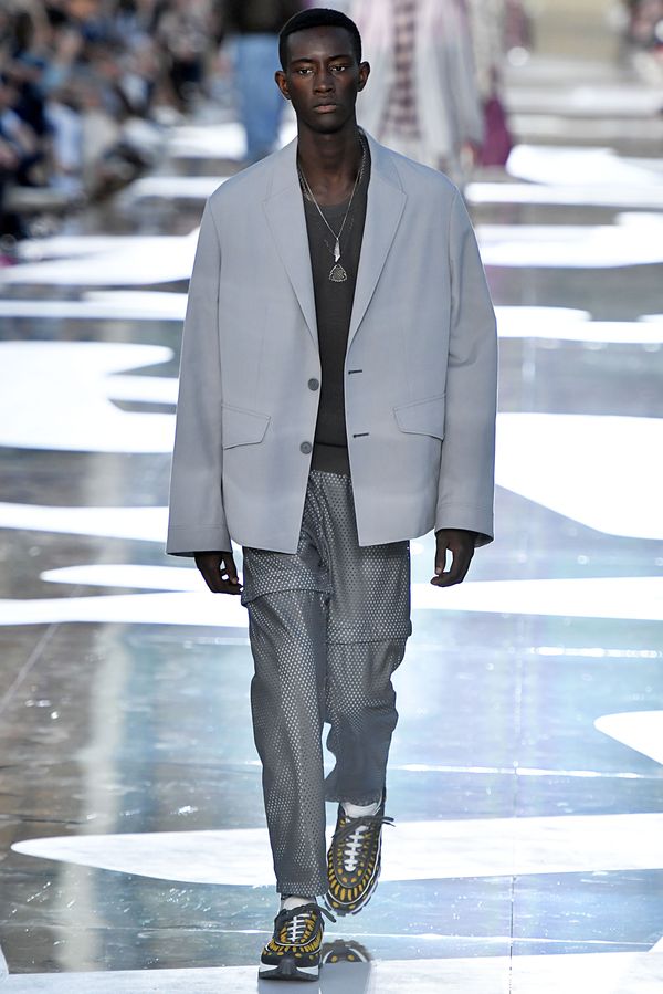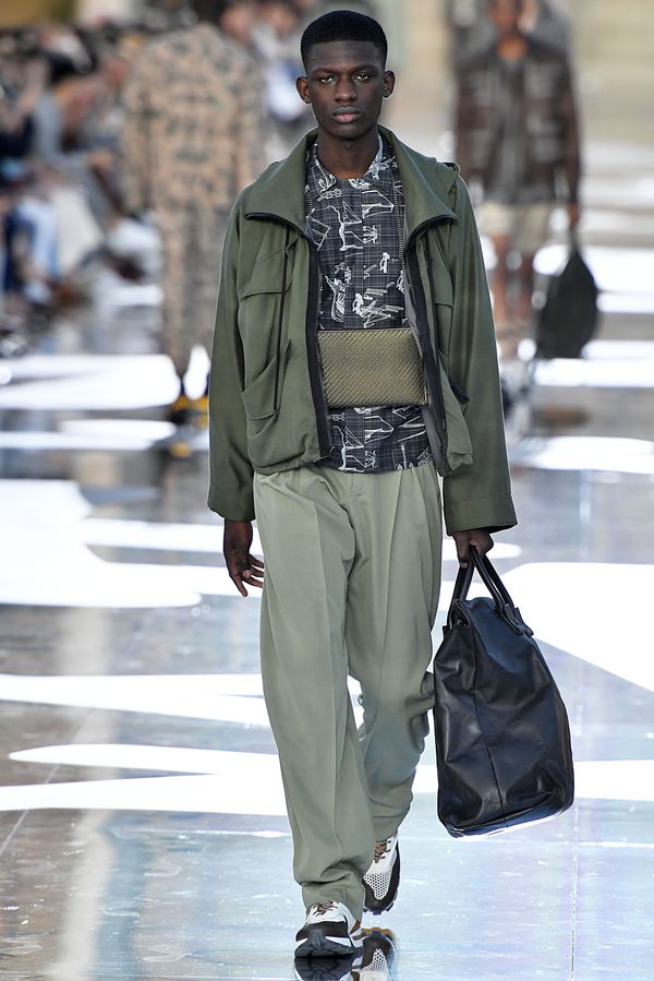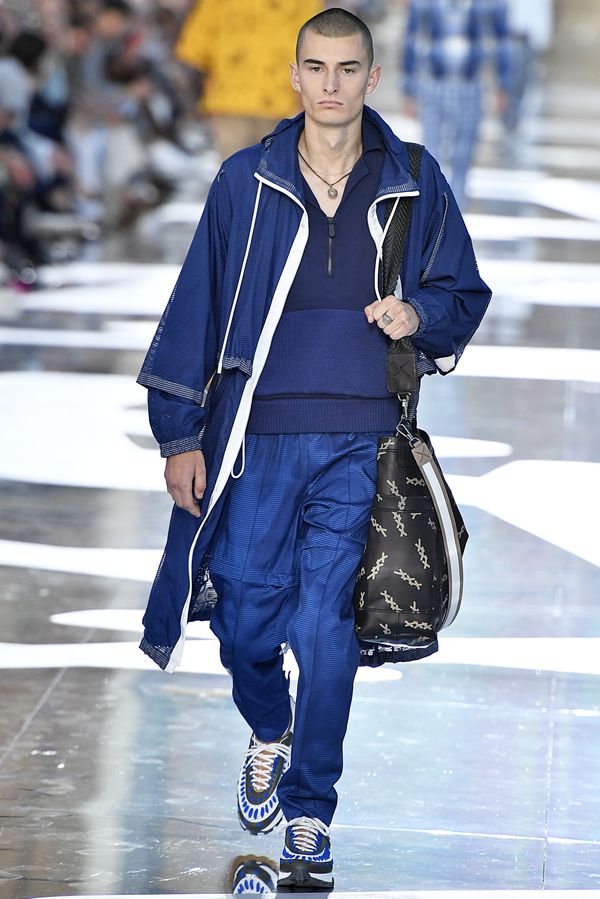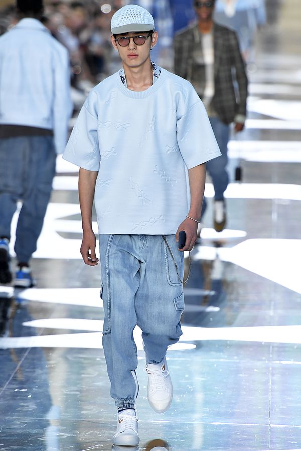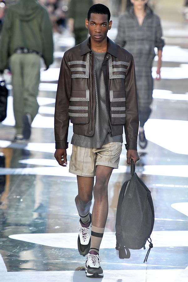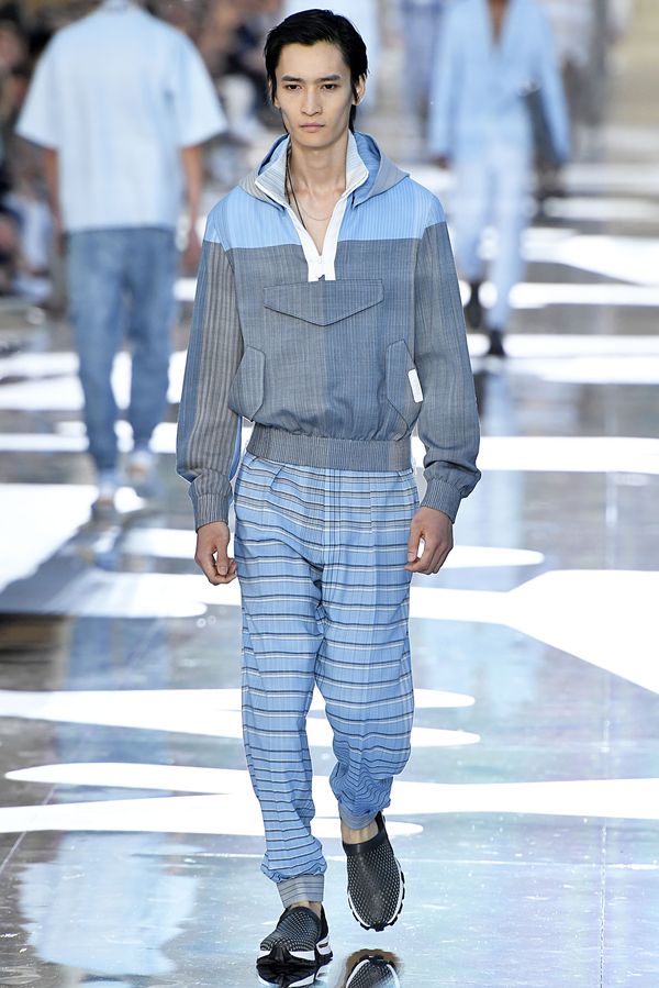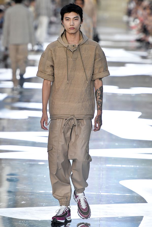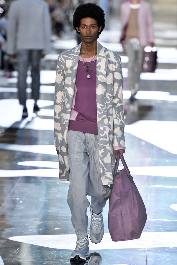 服裝的輪廓和輕量材質為本季設計核心:如日本工裝般寬鬆簡約的箱型輪廓、色彩層疊的格紋、以及豐富的印花設計,例如打網球的飛奔運動員、帆船輪軸鯨魚暗喻的海洋故事、藝術感的抽象幾何,與交錯綁帶的x符號。