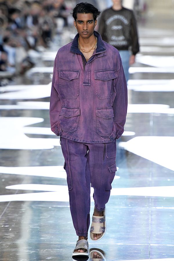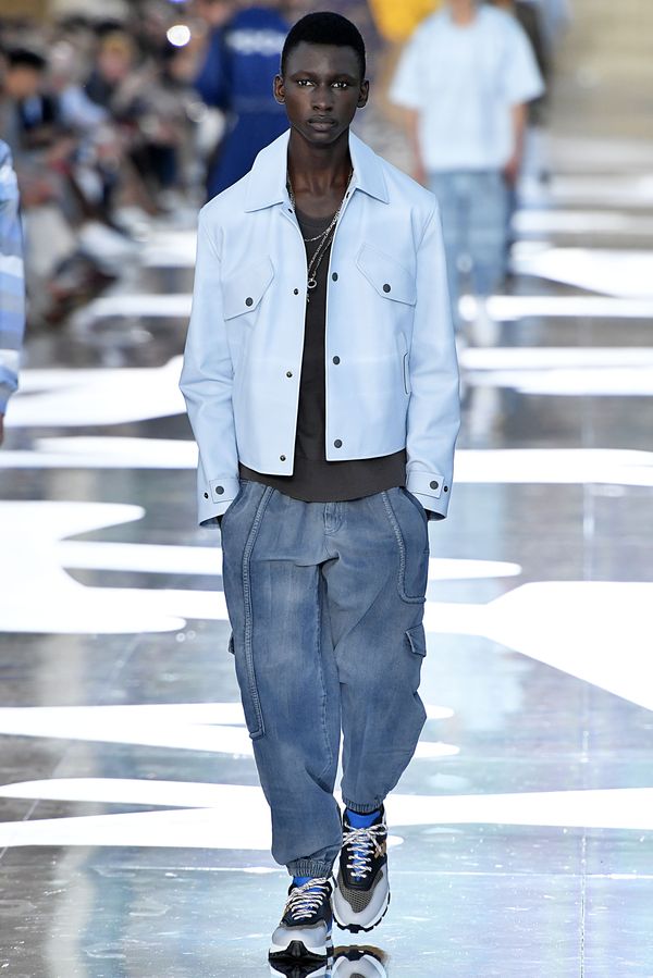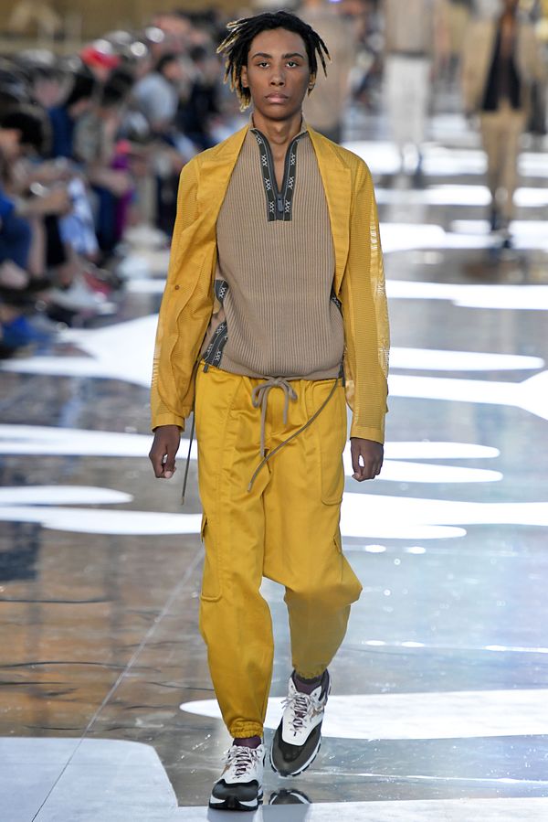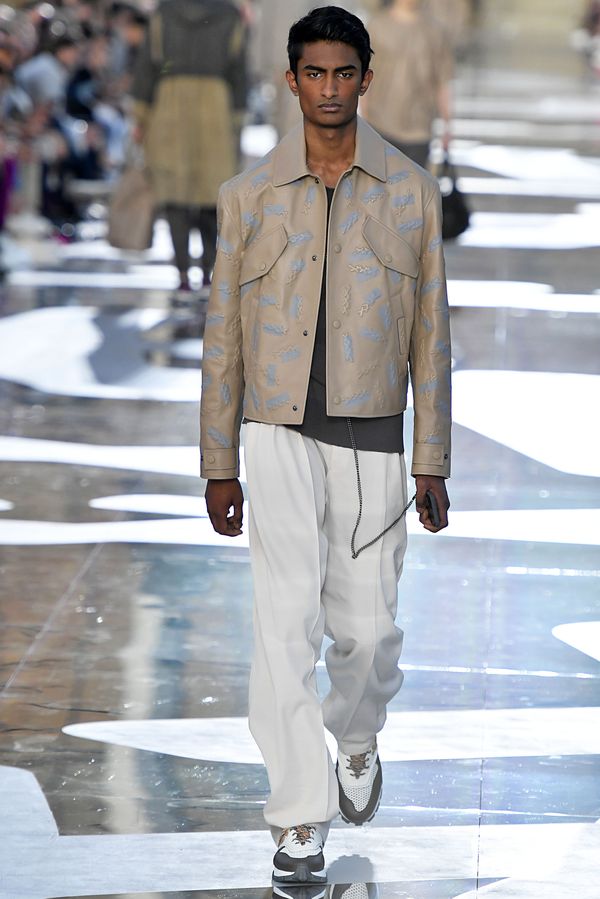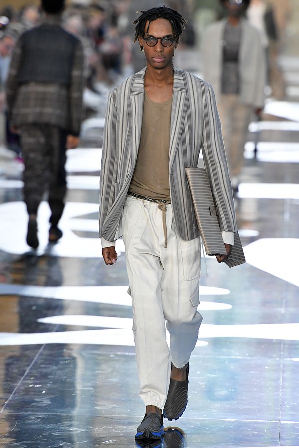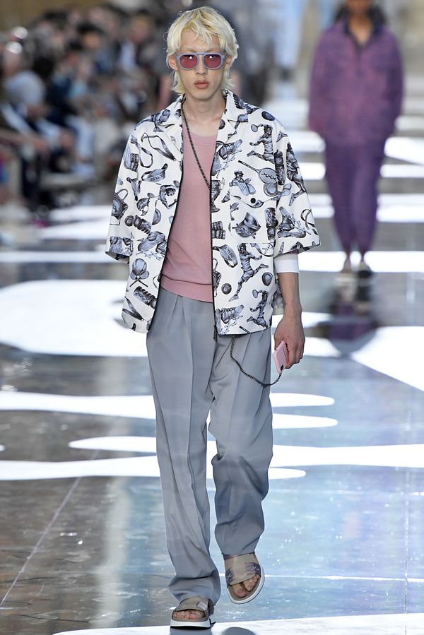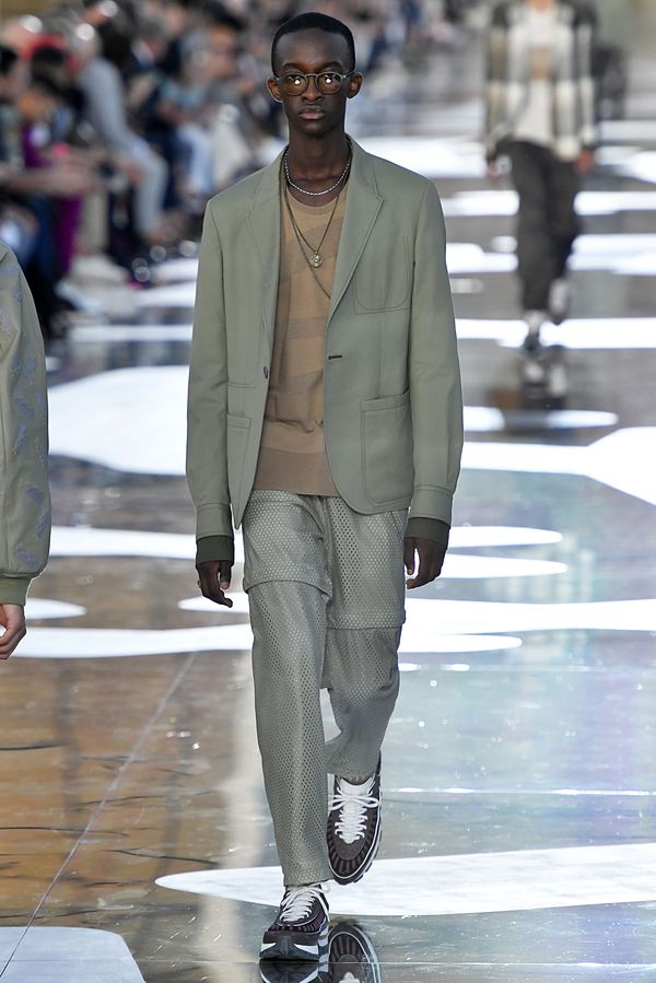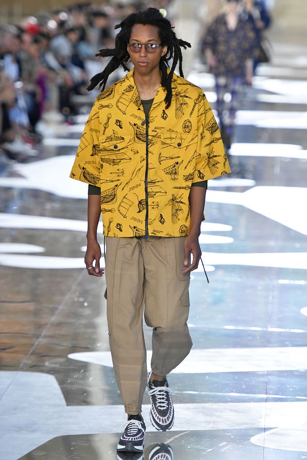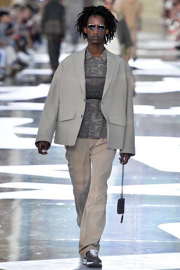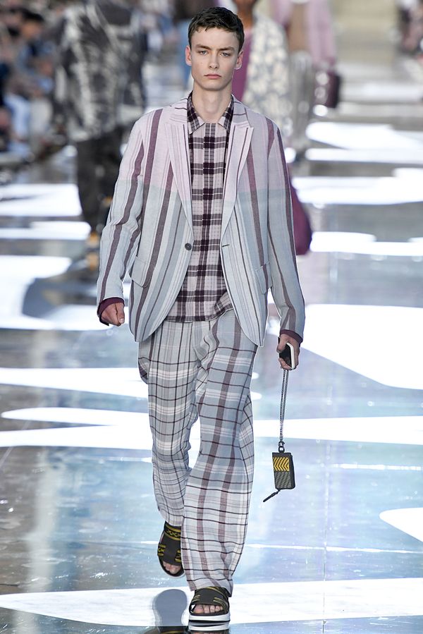 服裝的輪廓和輕量材質為本季設計核心:如日本工裝般寬鬆簡約的箱型輪廓、色彩層疊的格紋、以及豐富的印花設計,例如打網球的飛奔運動員、帆船輪軸鯨魚暗喻的海洋故事、藝術感的抽象幾何,與交錯綁帶的x符號。