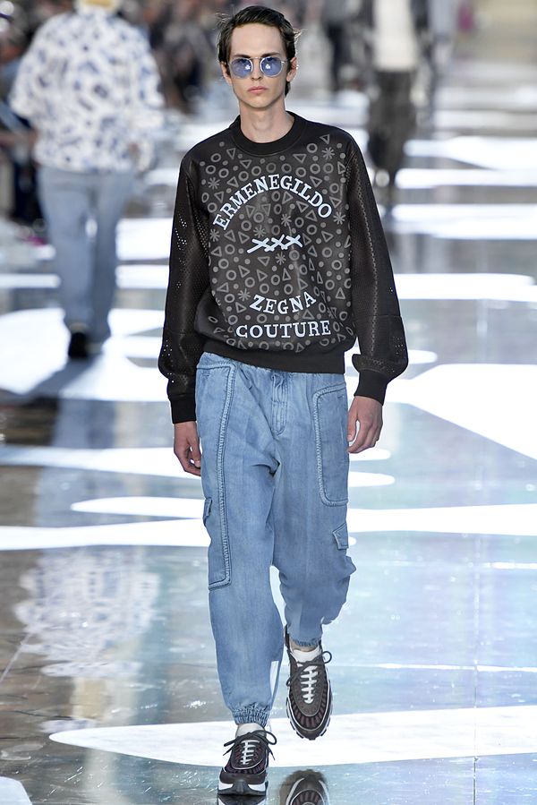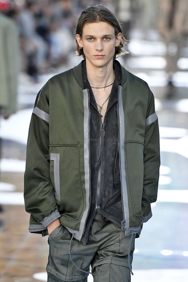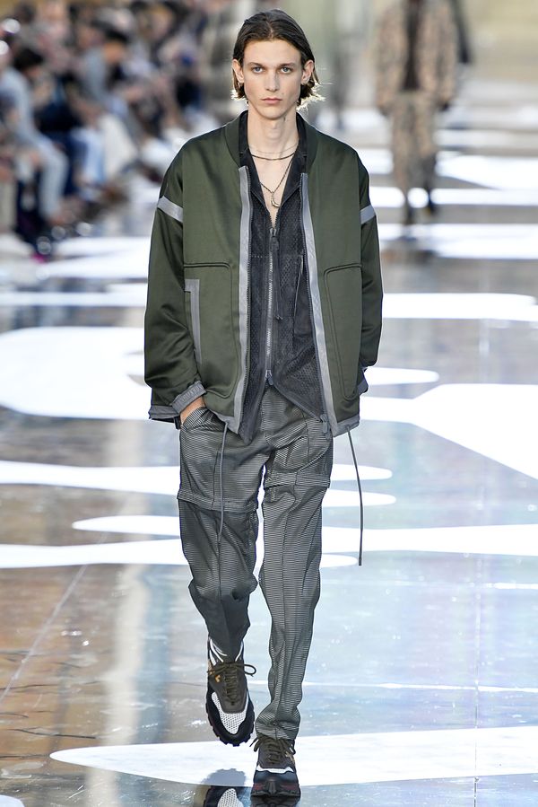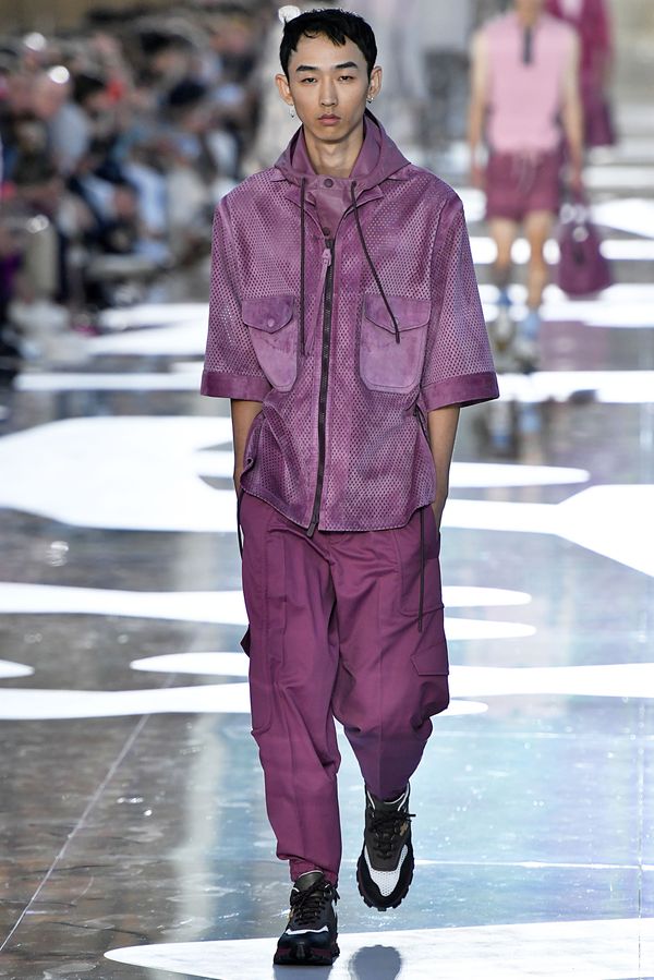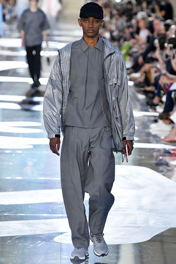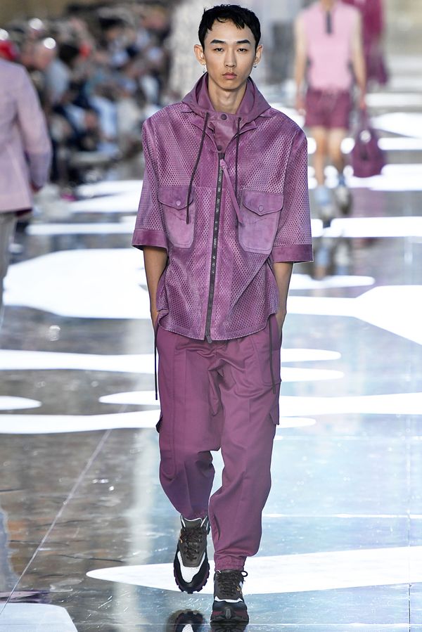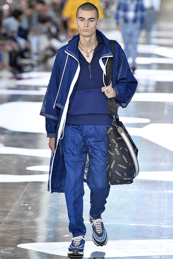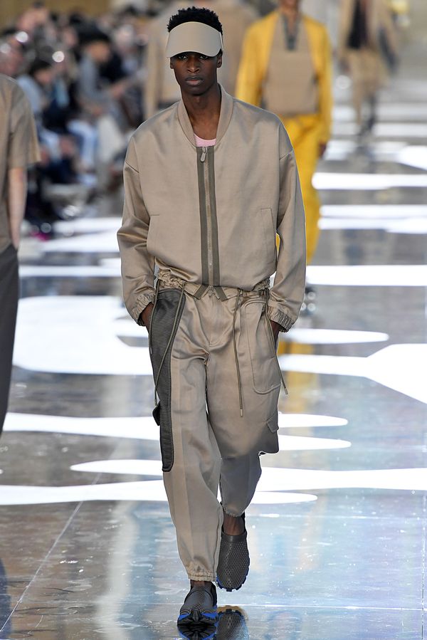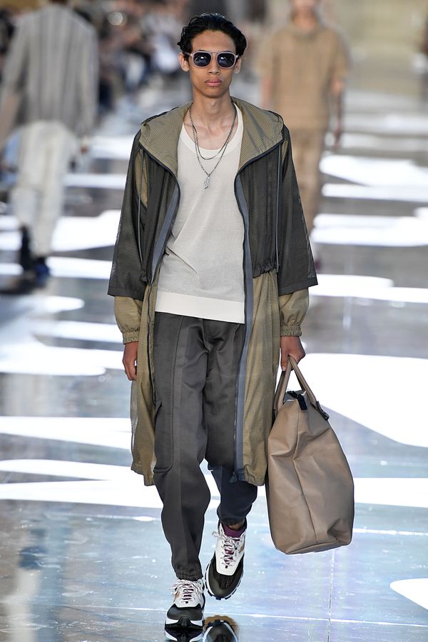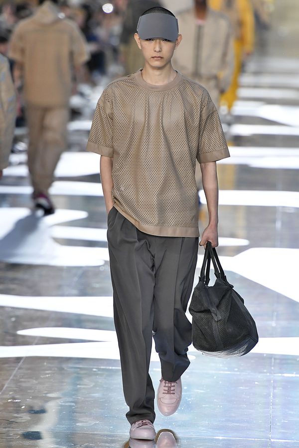 運動世界中的輕量機能型的材質也是藝術總監Alessandro Sartori的執迷,從防水薄膜到只有90克重的尼龍網眼材質,賦予整體服裝無重的自由感。