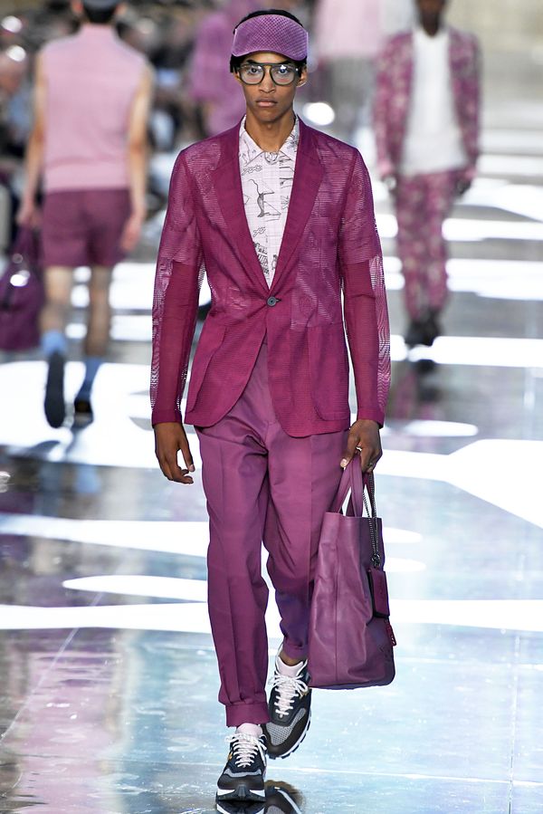 Oversize超大剪裁配上實驗性的領口細節與比例,以及豐富的色彩表現:淡藍色、洋蔥粉、鼠尾草色、橄欖綠、向日葵黃、摩卡色、航海藍和莓紅色交匯融合,成功為老牌男裝開拓「正裝休閒風Smart Casual」的新氣象。