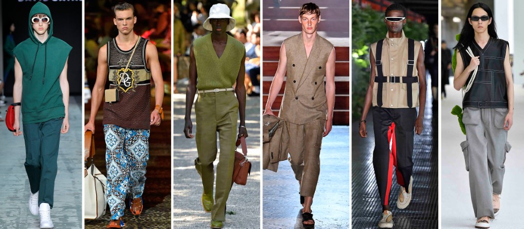 無袖上衣也是本季出現頻率偏高的單品之一,它既可能因應天氣暖化,也讓男性在夏日有了展露肌肉線條的正當理由。
