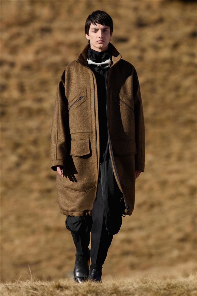 多層次的疊搭,及不同款式與功能的融合,貫穿於本季設計主題之中:廓形大衣由裝飾帶點綴,內襯為高科技桑蠶絲材質;耐磨羊毛厚夾克;精細皮革與羊絨拼接而成的襯衫既可單穿,亦可搭配休閒外套;同時厚薄毛衫兼具外套的實穿性。室內與戶外、內搭與外穿的界限逐漸模糊、不斷變換。全新系列通過不同單品的隨性疊搭,營造出飄逸而不失俐落的廓形,包括斗篷式大衣與夾克、工裝外套、派克大衣、棉衣、套頭衫以及窄腳褲。衣領、口袋和裝飾包邊的細節融入整體造型設計,確保在各種場合活動自如。