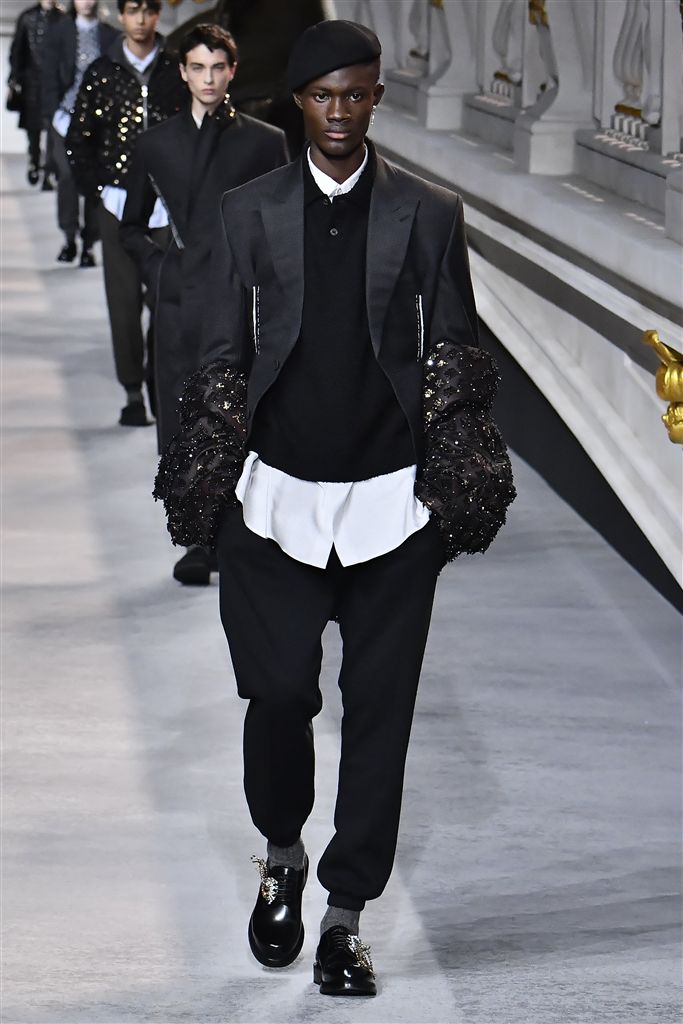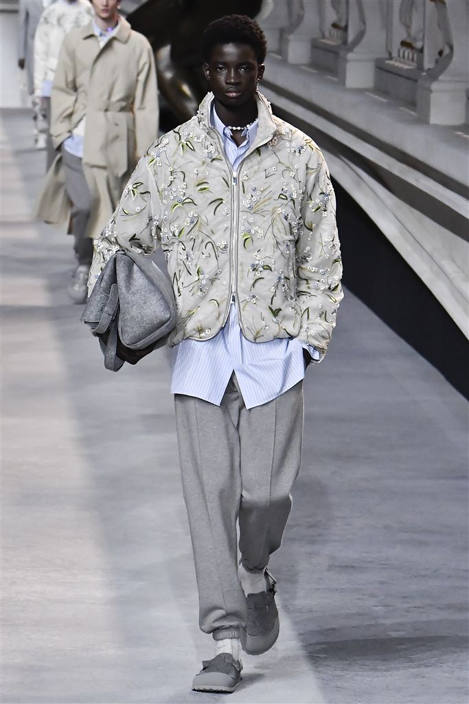 Kim Jones在這次的男裝系列中,重新演繹了Dior品牌經典的服裝廓型,包括New Look的Bar jacket,以細膩剪裁的訂製服手法,重新打造屬於當代男士的雅痞造型,還可看見花卉刺繡、絎縫藤格紋、玫瑰、幸運星、豹紋等元素。