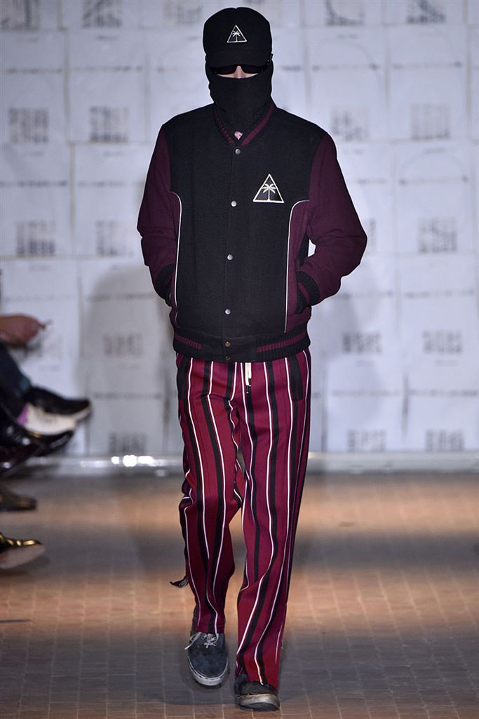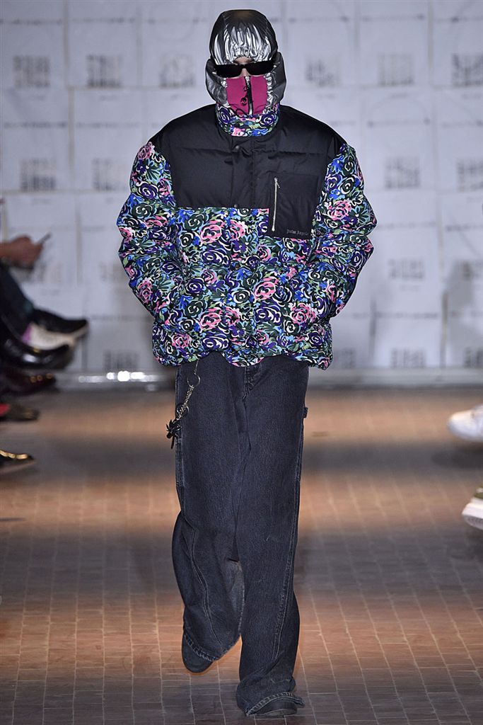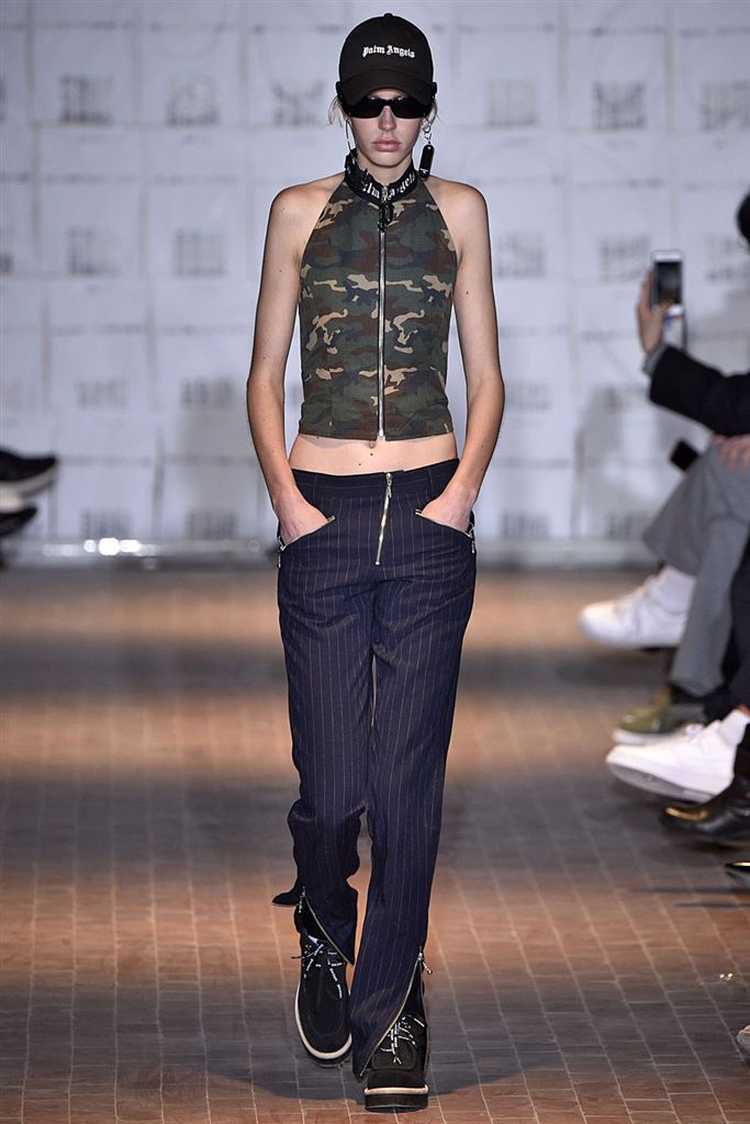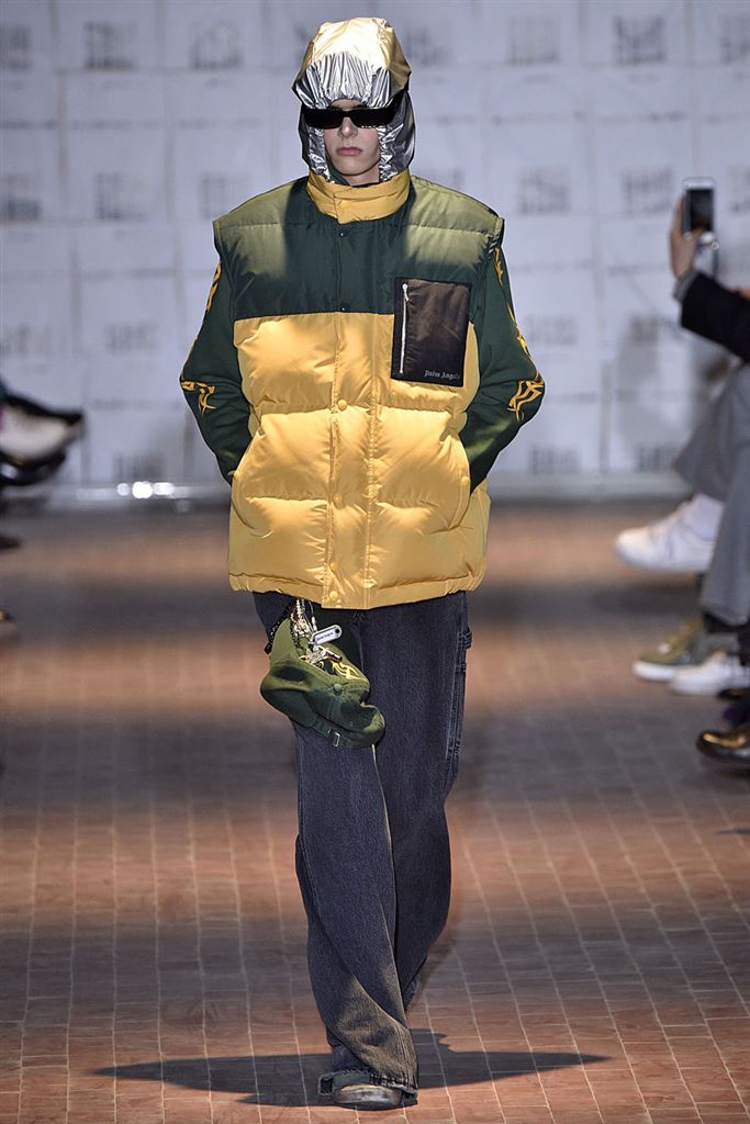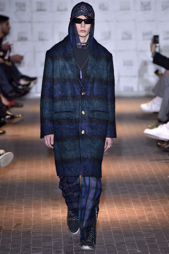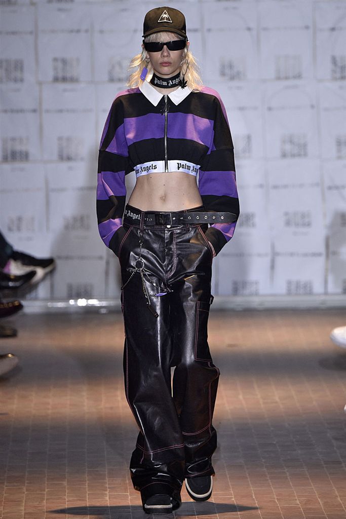 Moncler藝術總監Francesco Ragazzi創立兩年的品牌Palm Angels羽翼初豐。2017/18秋冬Palm Angels以一張洛杉磯滑板好手的相片為靈感。寬鬆的夾克、大衣、輕便西裝、橄欖球衫與運動褲搭配,全件商標運動套裝彰顯了現代街裝的美,還有復古狼圖騰的褪色帽衫。以及工裝元素,例如消防隊員的迷彩夾克以及警示貼條。