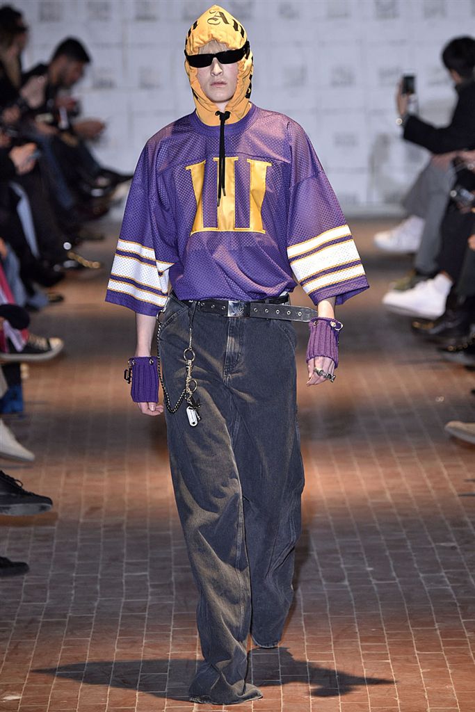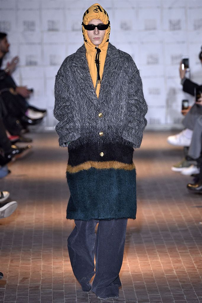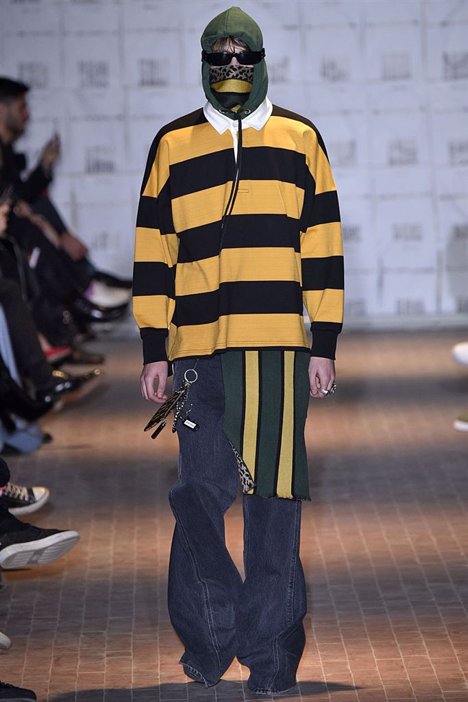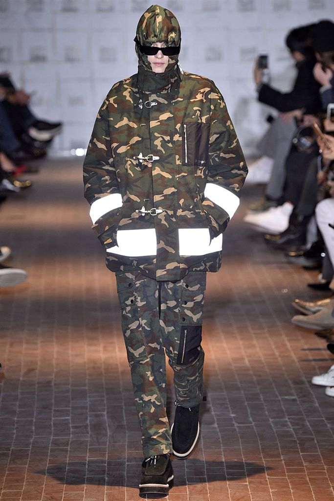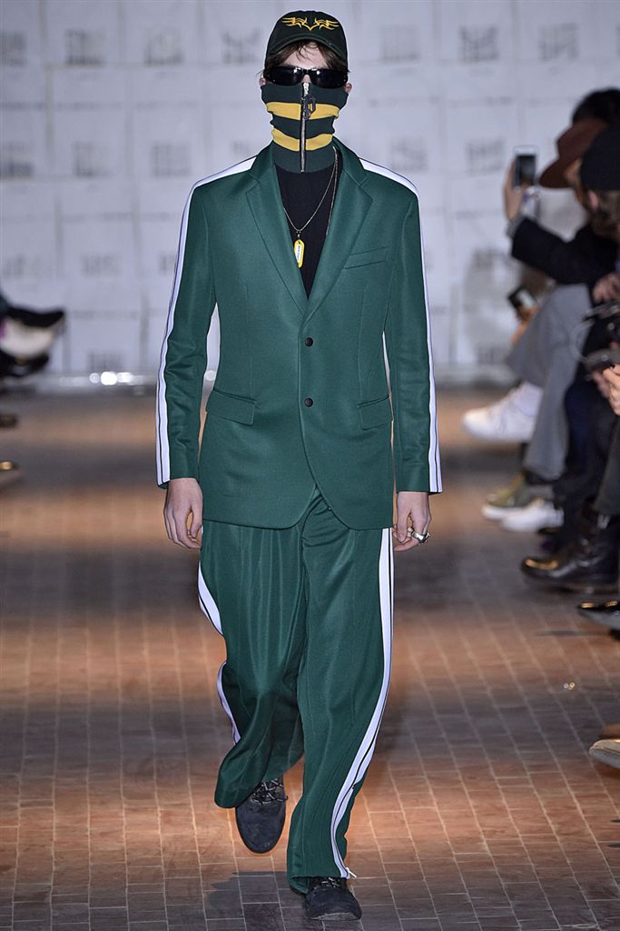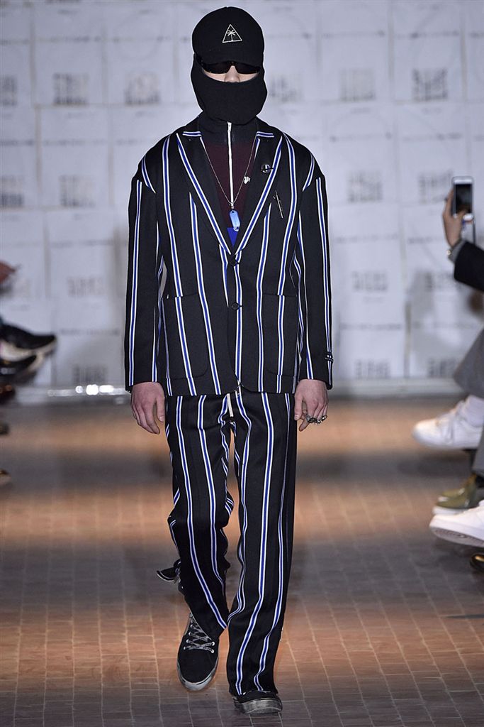 Moncler藝術總監Francesco Ragazzi創立兩年的品牌Palm Angels羽翼初豐。2017/18秋冬Palm Angels以一張洛杉磯滑板好手的相片為靈感。寬鬆的夾克、大衣、輕便西裝、橄欖球衫與運動褲搭配,全件商標運動套裝彰顯了現代街裝的美,還有復古狼圖騰的褪色帽衫。以及工裝元素,例如消防隊員的迷彩夾克以及警示貼條。