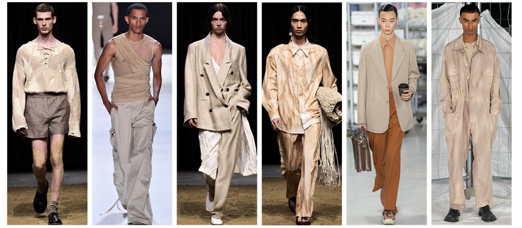 另外透過異材質搭配、隱約的同色印花或是色塊撞色,也可以增加大地色系的設計變化。