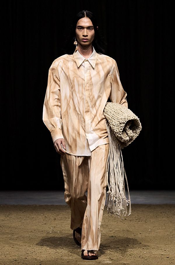 中性大地色依舊是鎂光燈焦點,像是卡其色、象牙白、裸膚色、米褐色等,尤其在低調奢華趨勢的推波助瀾下,更是彰顯低調高級感的最佳選擇。Federico Cina的雙排扣寬鬆西裝搭配寬鬆長褲是新一代商界紳士用來彰顯身份卻又低調的穿搭首選。