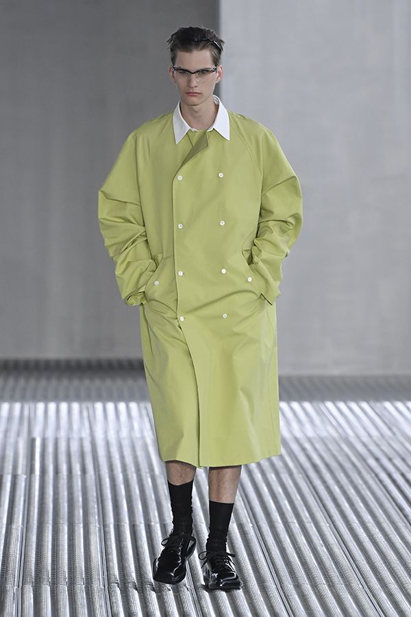 相較於過去沈穩的軍綠色,2024春夏升級成帶著粉彩感的橄欖綠,不管是和中性色或其他色調搭配,都可以呈現出材質的高級質地,像是Etro的連身褲,或是Prada的雙排扣大衣,搭配簡約的輪廓,顯得清當清新。