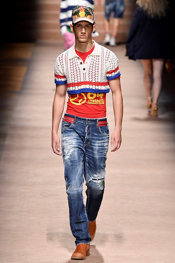 刷淡或破洞的寬鬆牛仔褲是基本款,像是Dsquared2以破洞牛仔褲搭配西裝,ALTX以乾淨的淺色牛仔褲搭配帽T,都非常實穿。另外也有Andersson Bell或Dhruv Kapoor用不同顏色的布片層次拼接。