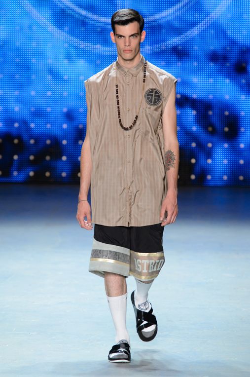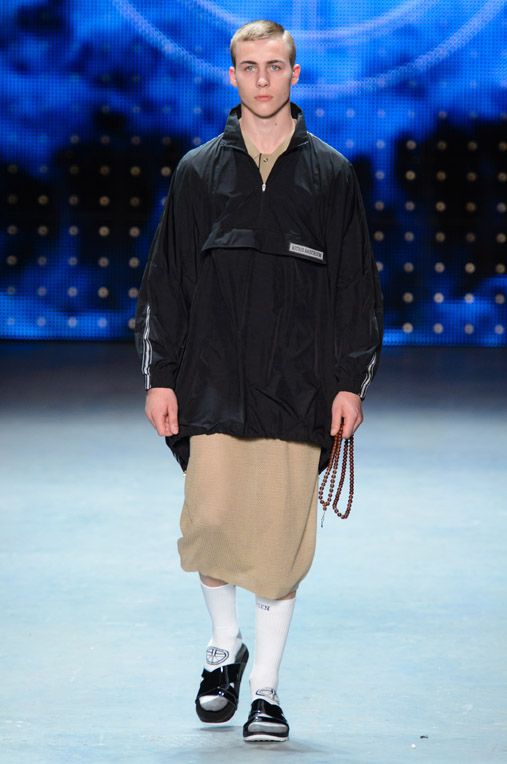 長版罩衫在 2017 春夏倫敦男裝週也興起一陣風潮,以 JW Anderson 為例,鮮豔對比配色搭配誇張袖長展現出趣味性的輪廓外觀。或是 Xander Zhou 和 Astrid Andersen 如僧侶服般的造型,卻不忘點綴些許街頭元素,呈現既衝突又時髦的美感融合。