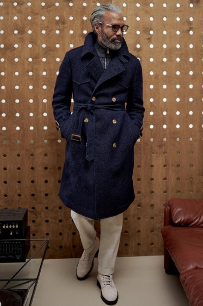 此外,色彩豐富的提花、Shetland毛衣與斜紋針織為西裝造型增添層次感,而拼接飛行員夾克與緞面絎縫外套,則賦予傳統男裝嶄新面貌。