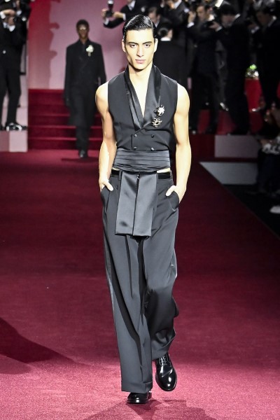 隨著大秀進行,整體風格逐漸轉變,從街頭風格過渡至更精緻的都會時尚。亮片西裝外套搭配牛仔褲、層疊T-shirt與褶皺長褲、絲絨西裝搭配同色細節,展現Dolce & Gabbana擅長的隨性奢華感,展現當代男性從日常穿搭到紅毯造型的多層次魅力。