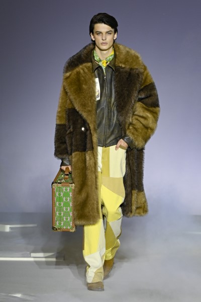 Emporio Armani、Prada和Dolce & Gabbana透給皮草細節,營造奢華氛圍,提高冬季男裝的精緻度。在巴黎的時裝週上,人造皮草大衣也是必備單品,Sacai利用結構對比來形成對比,而Juun.J則用潮流寬鬆的輪廓來詮釋人造毛皮。