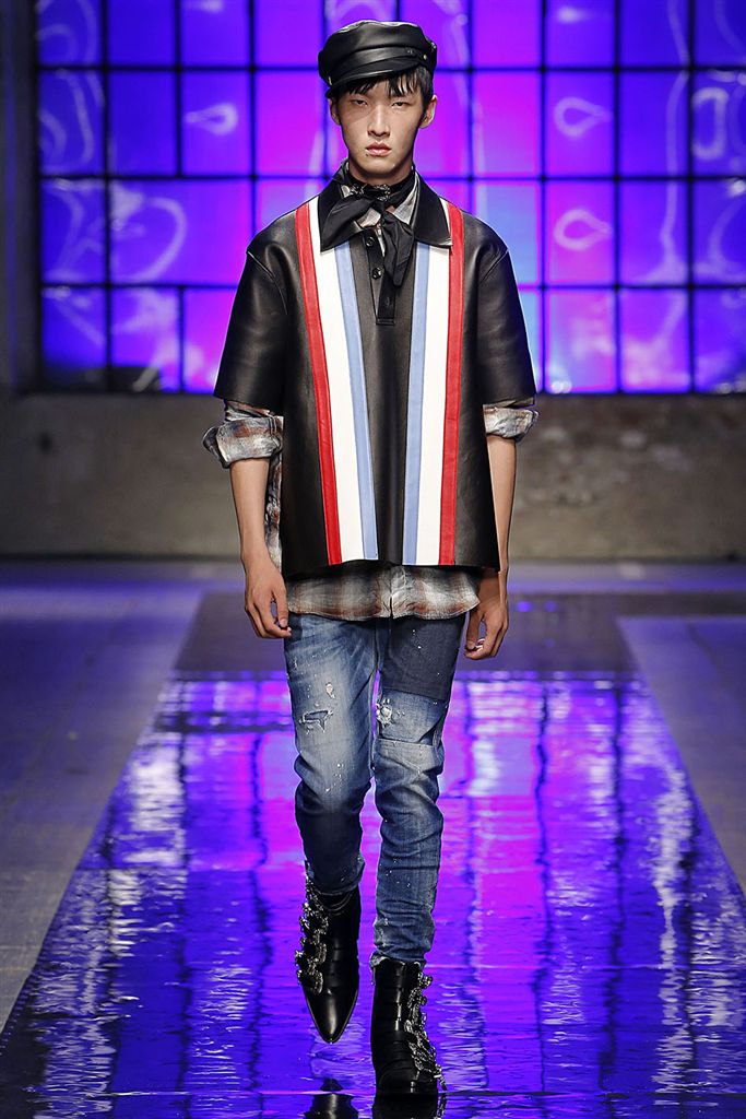 Diesel Black Gold透過醒目又明亮的粗細條紋組合讓基本的POLO衫款式顯得變化性十足;同樣也使用了粗細條紋組搭的還有Munsoo Kwon,超大的外罩上衣寬條與內層細條內搭,加上寬大同色系的牛仔褲,展現出夏日活潑的清爽感。