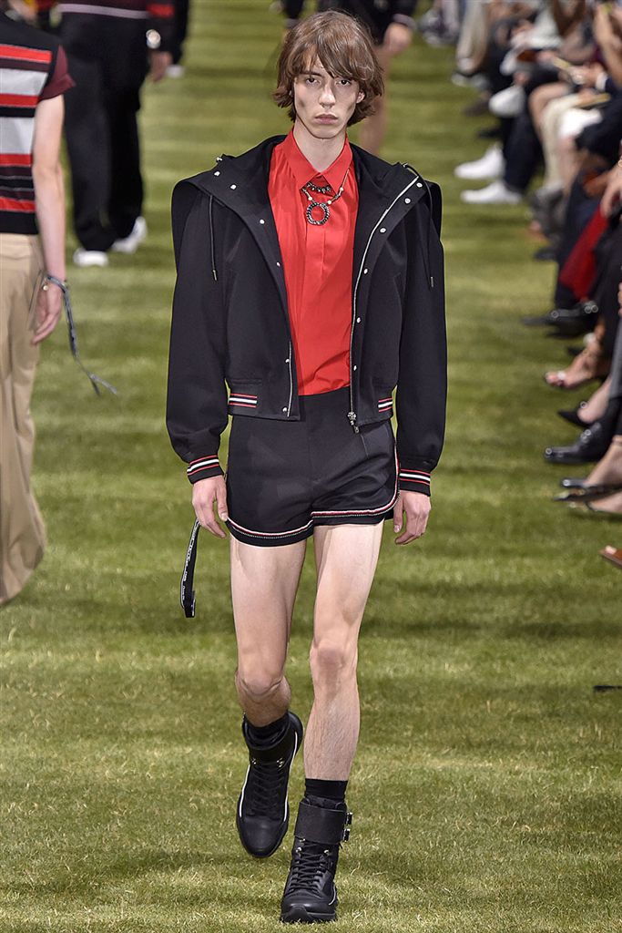 適逢Dior七十週年,也是Kris Van Assche執掌Dior Homme十週年,擅長解構與重組設計的他,將學院派、運動風融入2018春夏男裝,以黑色羊毛西裝為主軸玩味版型,或裁去袖子變成背心,或加長下擺成為大衣,甚至加入Bar Jacket細腰豐臀的廓型。就連Polo衫、襯衫或褲頭,也都可以接上西服下擺。下身則是寬鬆長褲或窄版小短褲,以及慢跑鞋,再一次向年輕市場靠攏。