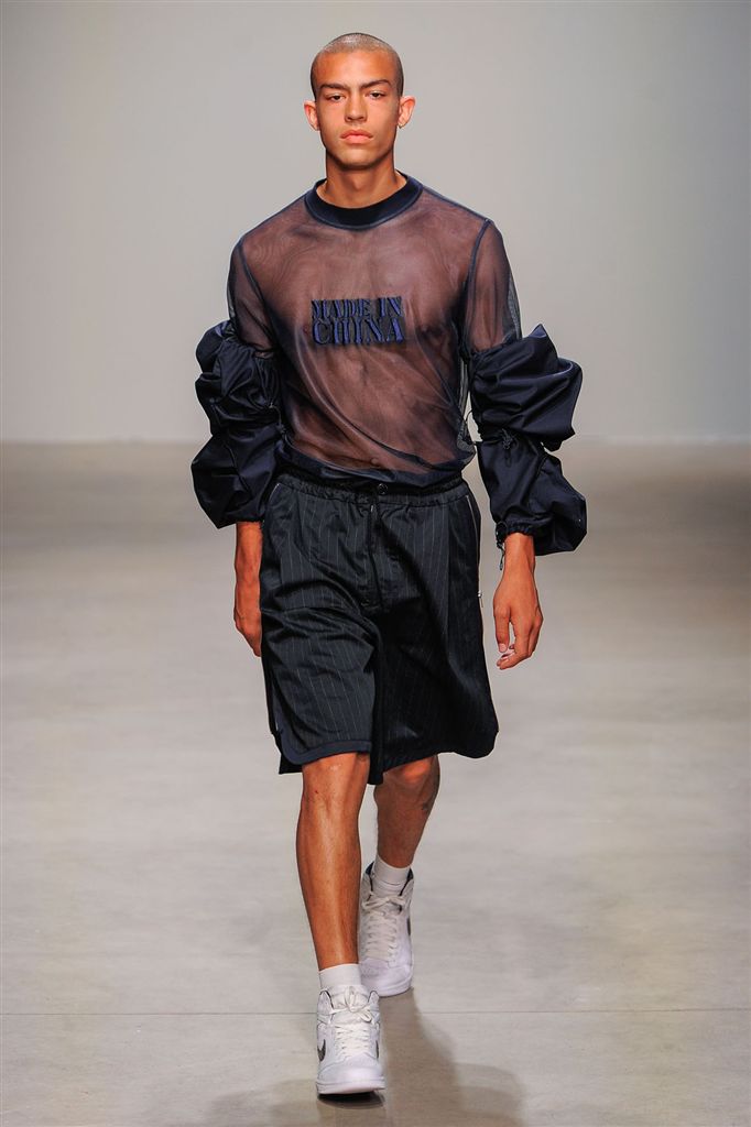 中國出生、倫敦長大的中國設計師王逢陳(Feng Chen Wang),要用新一季的設計帶領我們跳脫“Made in China” 的負面標籤。不讓MADE IN CHINA只能躲在衣標上,而是讓它大大的寫在T-SHIRT正面,以及誇張的MIC立體字形腰包上。