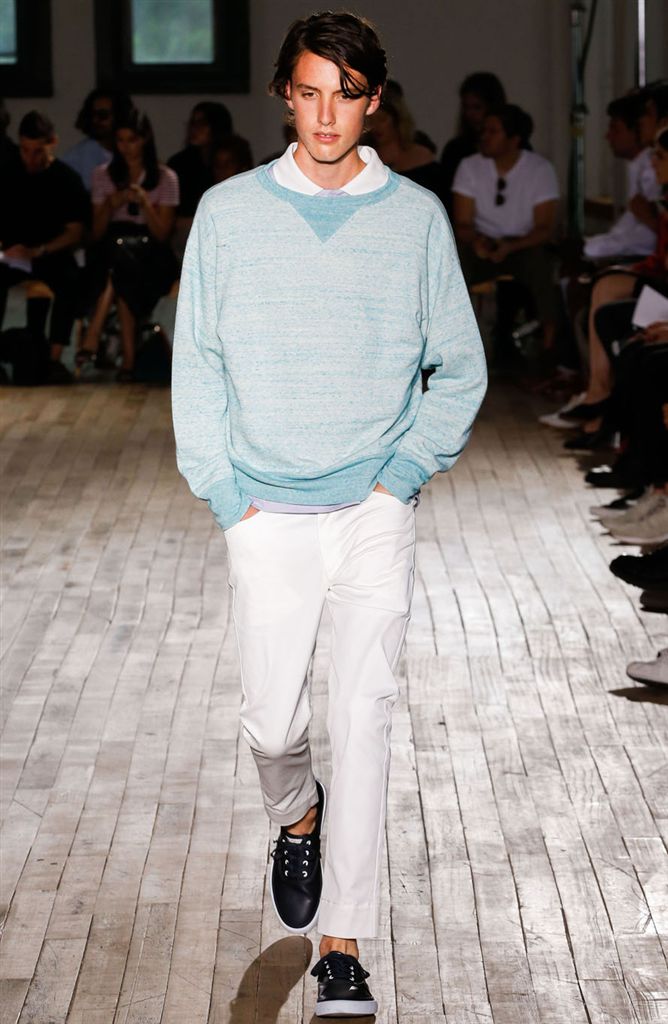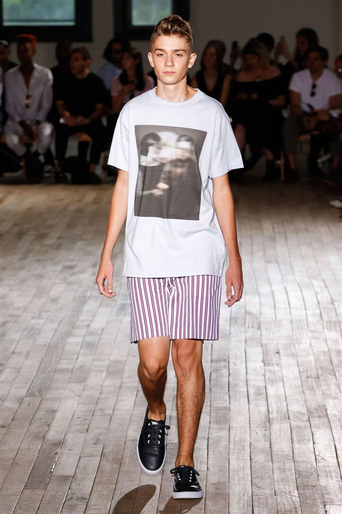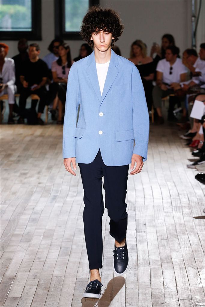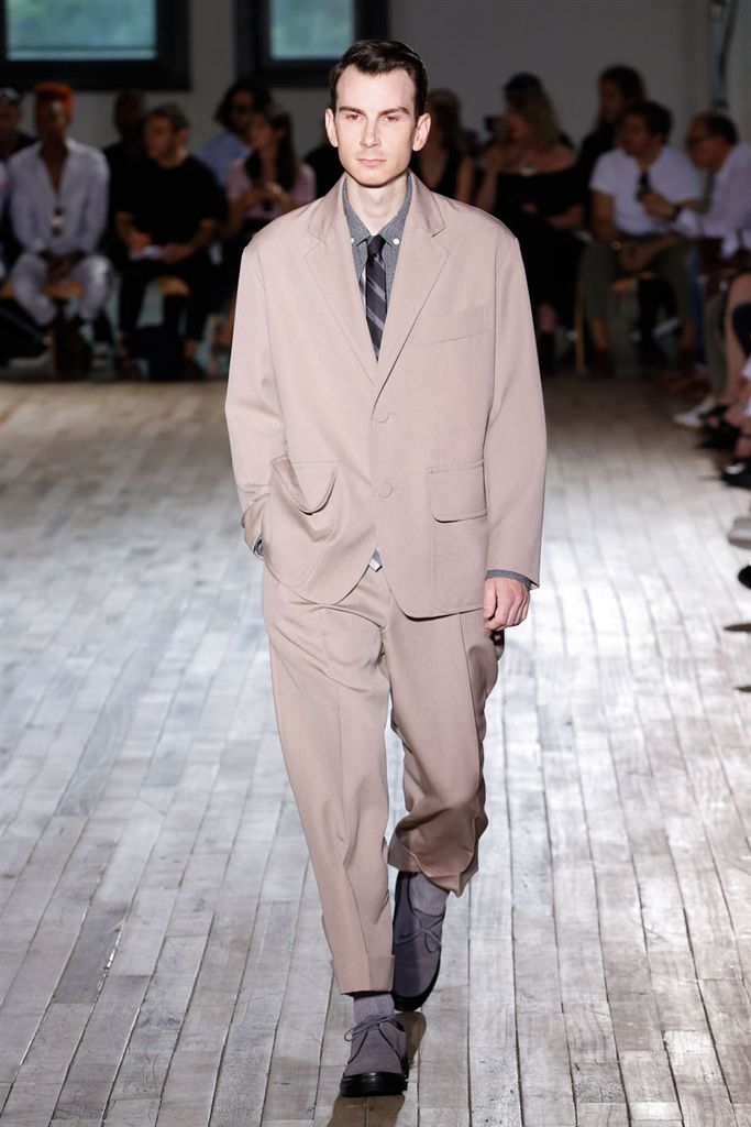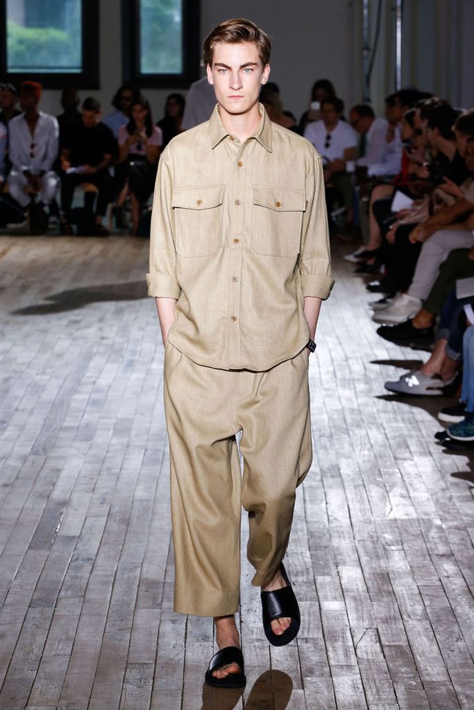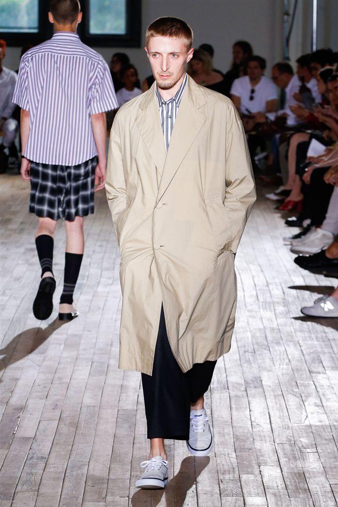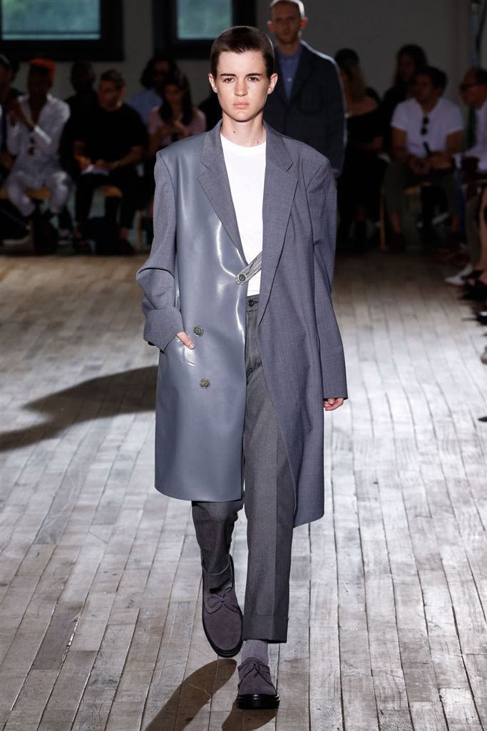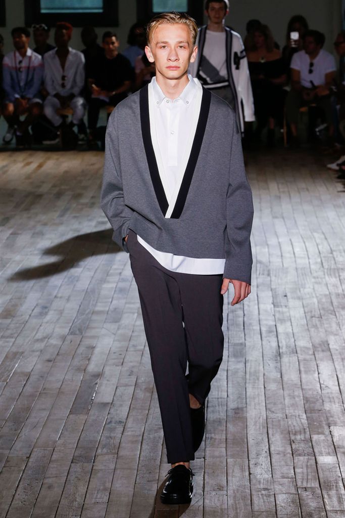 N. Hoolywood在2018春夏走冷靜沉穩的美式經典風格,相較於上季more-is-more繁複的流浪漢主題,有著180度的大轉變。 日本設計師尾花大輔去年在美國正好歷經總統大選,也因此為他開啟了美國歷史之旅,本季以彬彬有禮、清爽而自信的美國前總統約翰‧甘迺迪為範本,象徵更快樂、簡單的美國。 參考50年代帶點運動的常春藤學院風,從短版的休閒西裝到帶有文字貼布的棒球外套、寬鬆的絞花毛衣,配上加長露出一截的襯衫,設計師以柔軟的剪裁輪廓、更分層潛能,跨季穿衣的概念,展現傳統風格的現代詮釋。
