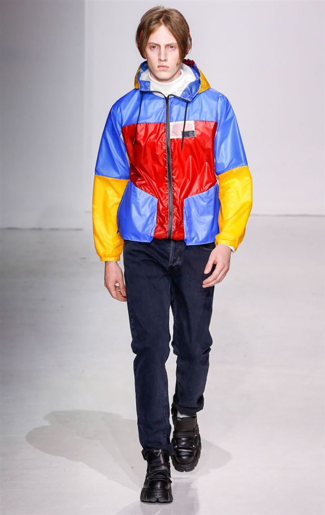 面料或色塊拼貼的手法,在2018春夏紐約男裝周仍然可以見到蹤跡。譬如Patrik Ervell和Landlord的跳色拼接,鮮豔奪目;Kenneth Ning的拼組外套與襯衫,帶有解構的前衛氛圍...