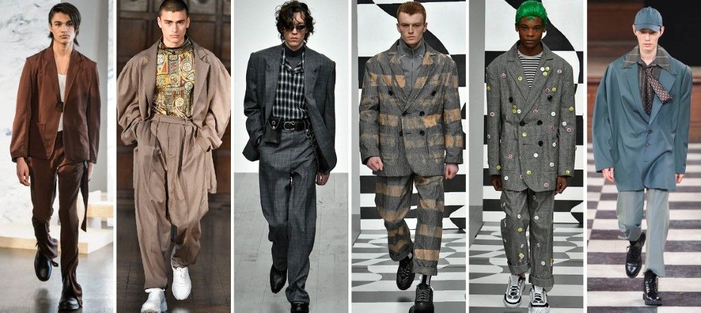 柔和垂墜的面料加上寬鬆的輪廓,有著濃厚的80年代復古風情,例如Edward Crutchley或John Lawrence Sullivan以寬大厚實的墊肩,打造出垂墜式的箱型輪廓,Daniel W. Fletcher則使用輕盈的面料打造出垂墜舒適的西服款式。