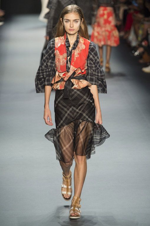簡約實穿的Tome,2017春夏在領口和裙邊添加皺褶、露肩、荷葉邊的設計,以簡潔的色彩搭配格紋、條紋圖案,輕盈的層次展現閒適又不失優雅的品味。