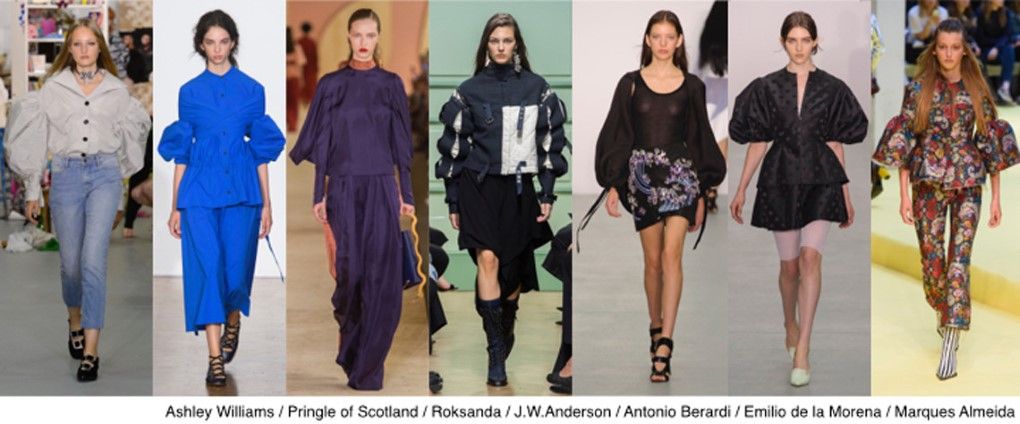 設計師們相當有默契的在2017春夏紛紛向歷史請益,創造出許多誇張的古典袖型衣,如Emilio de la Morena的汽球袖型提花收腰上衣、Roksanda的垂墜感考爾(cowl sleeves)袖型飄逸中長上衣、Ashley Williams的超大羊腿袖襯衫、Antonio Berardi