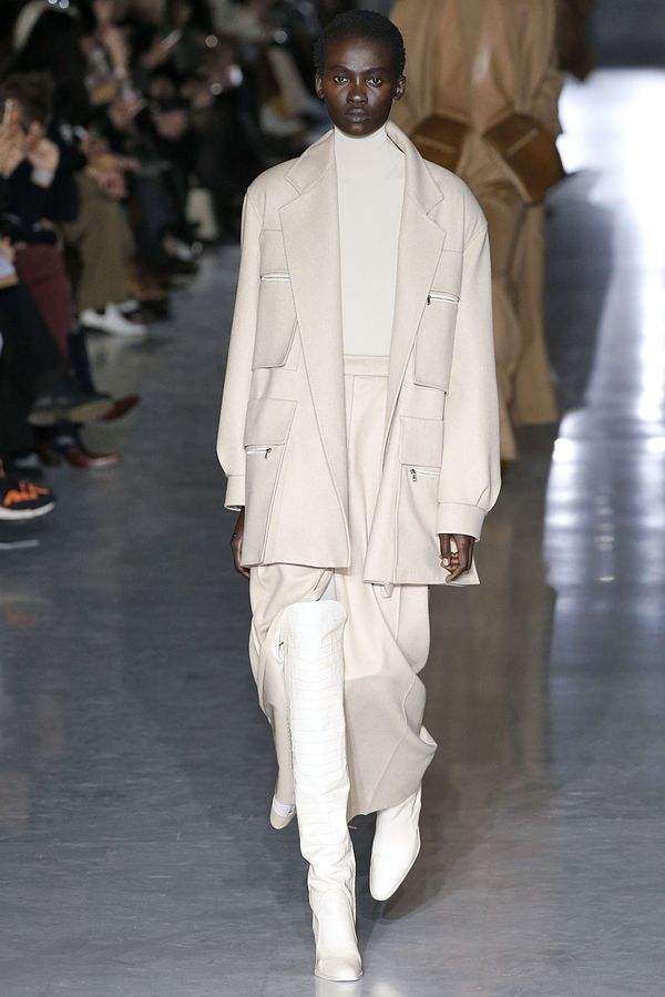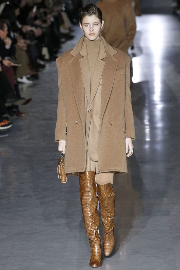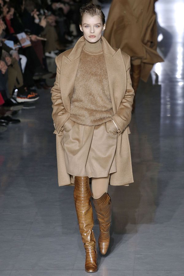 本季,Max Mara探討賦予婦女權力的服裝模樣,使女人不受束縛,透過各種角色和模樣來增強自己,包括單色連衣裙、寬大短版方形輪廓的外套、九〇年代的復古款式靴子,並著眼於不使用皮草,將著名的駱駝大衣的以駝色的毛絨填充物取代,重現羊毛皮的外觀。