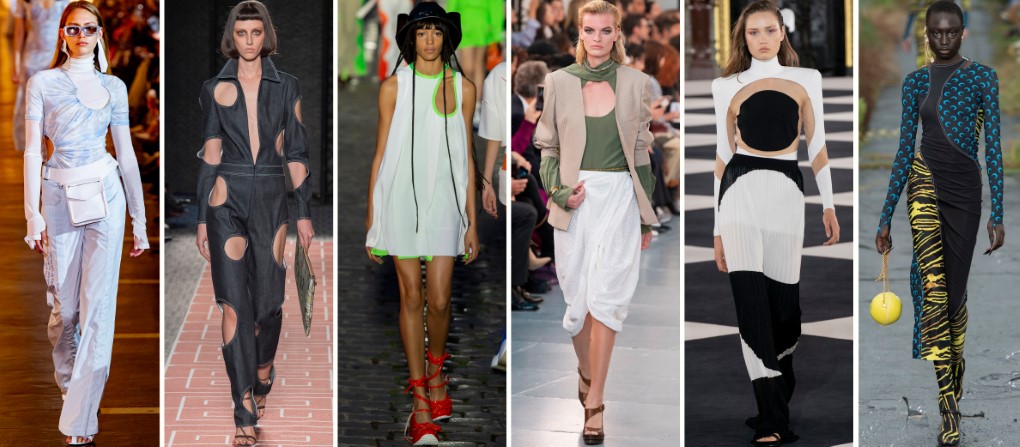 孔洞細節在2020春夏以各種變化呈現,其中巴黎的秀台上又以帶有未來感的挖洞手法最為亮眼,運用挖洞細節打破原有的服裝結構,替代原有的蕾絲或是薄紗成為性感風格的新潮流。